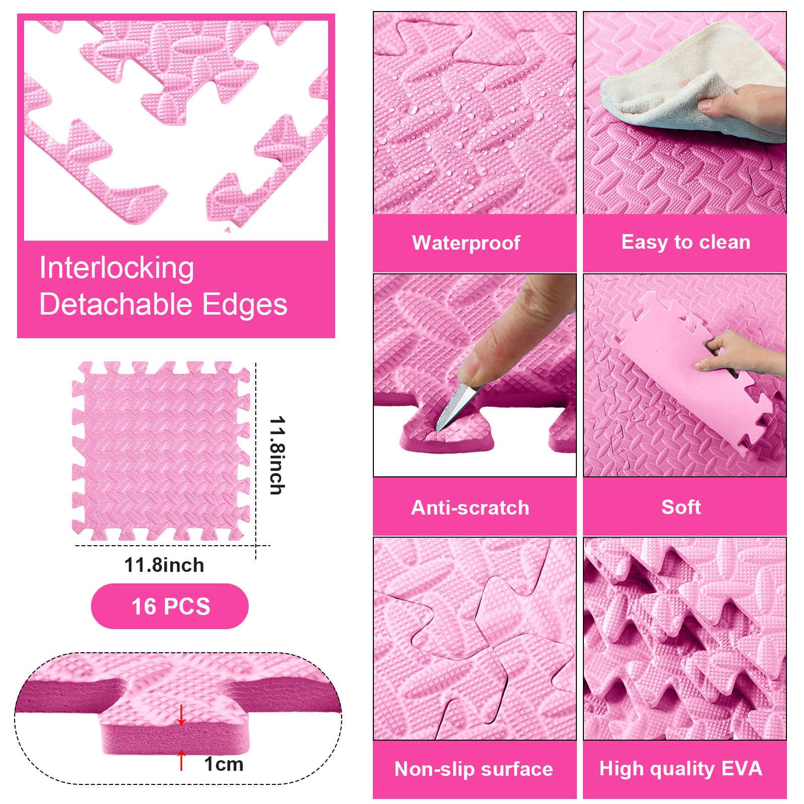 Features: You can send the playroom mats to your neighbors or friends who have kids, these gifts are practical and thoughtful for them. The foam puzzles mats are sufficient in quantity and reliable in quality, which can serve you for a long time, you can buy and use them with confidence. Specifications: Material: foam Color: light pink Each size: approx. 30 x 30 x 1 cm/ 12 x 12 x 0.4 inch Package includes: 16 x Floor mats Notes: Manual measurement, please allow slight errors on size. The color may exist a slight difference due to different screen displays.