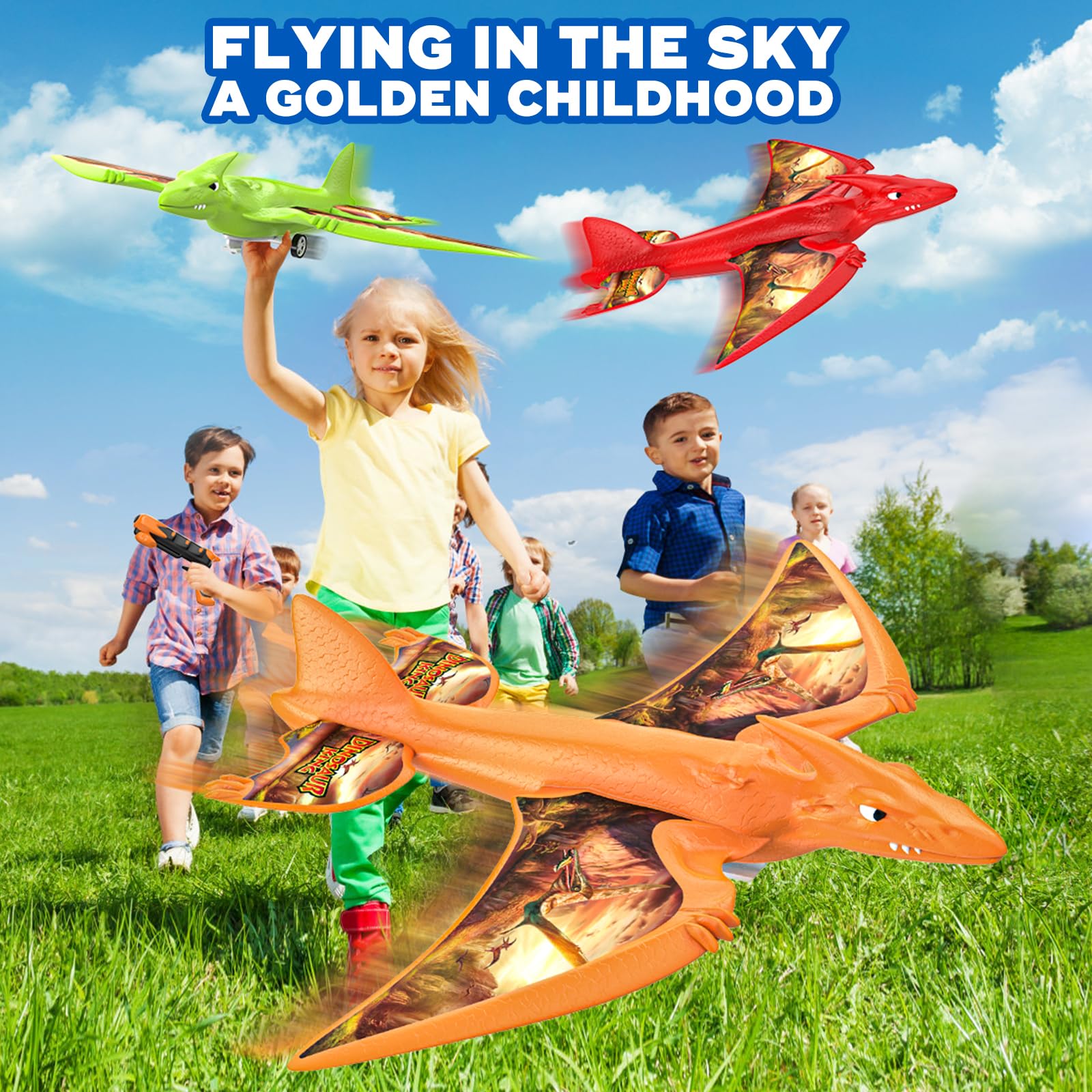 - Q: What features do these airplane toys have that make them unique? A: These airplane toys come with colorful LED lights, a dinosaur theme, and two flight modes, allowing children to experience different flying styles. The inclusion of stickers adds an extra fun element for kids to customize their airplanes.