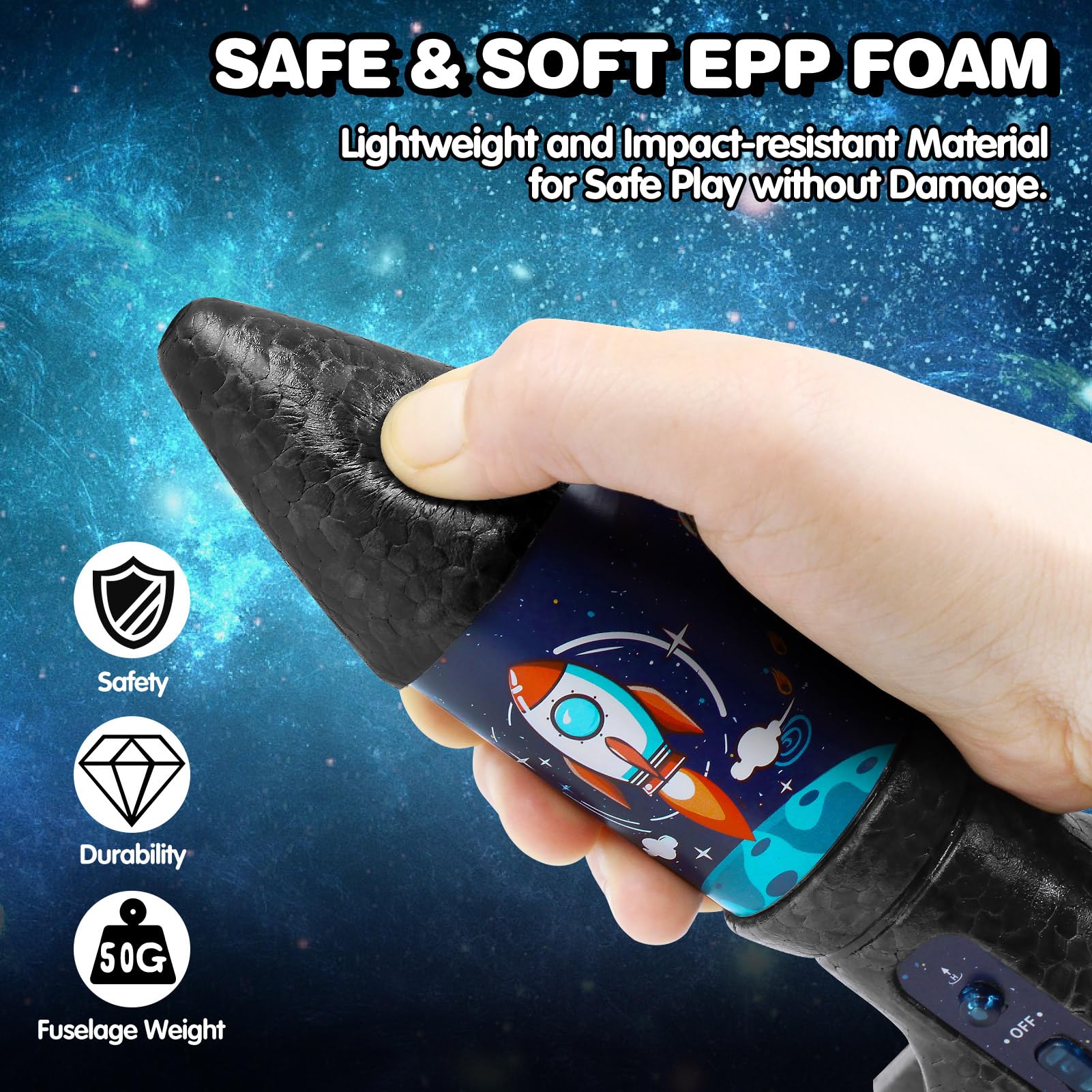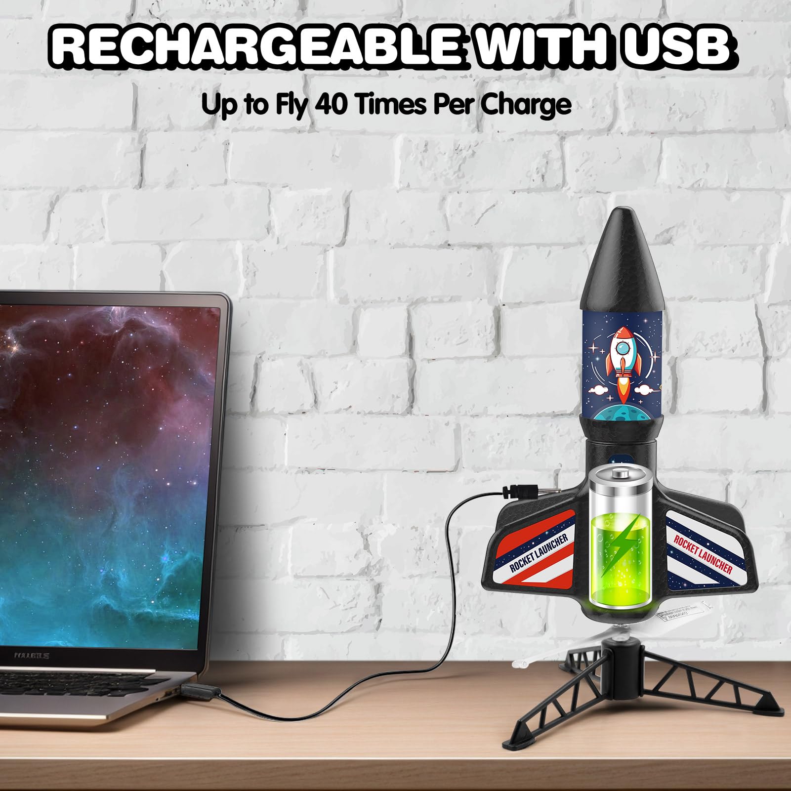 2 Flight Settings - Our Rocket Launcher For Kids Features Two Height Settings For Added Excitement. With A Simple Press Of The Launch Button, Your Rocket Can Soar Up To 100 Ft (About 4 Seconds Flight Time). Press The Launch Button Twice In A Row For An Impressive 200 Ft Launch (About 8 Seconds Flight Time). Perfect For Outdoor Play In Large Yards Or Parks.Safe Landing And Reusable - Made From Long-Lasting Epp Foam,The Rocket Launcher For Kids Fuselage Is Lightweight And Ensures A Smooth Flight While Elevating The Launch Altitude. Equipped With A Built-In Parachute That Automatically Deploys At The Peak Of Its Flight, The Kid'S Play Rocket Descends Gently For A Secure Landing. Once The Parachute Is Back In Place, The Parachute Toy Is Ready For Another Launch.Rechargeable Rocket - Our Electric Rocket Features A Built-In Rechargeable Lithium Battery And Includes A Usb Charging Cable For Convenience. With Just A 35-Minute Charge Time, This Outdoor Toy Can Be Launched 25-40 Times Depending On The Chosen Altitude Mode, Providing Hours Of Fun For Kids. Say Goodbye To Battery Replacements And Save Money.Led Lighting Function - The Motorized Rocket Toy Is Equipped With Led Lights That Capture Children'S Attention During Both Day And Night, Providing A Truly Enchanting Experience. By Launching The Rocket Launcher For Kids At Night And Tracking Its Illuminated Path To Observe Its Landing Spot, Children Can Easily Locate The Rocket Launcher In The Darkness.Great Gift Idea For Kids - If Your Grandsons, Granddaughters, Sons, Daughters, Nephews Or Nieces Are Curious About Space And Rockets, This Rocket Launcher For Kids Will Be The Ideal Gift To Inspire Them To Explore Endlessly! Discover The Mysterious Power Of Flight And The Universe. Fill Them With Fun And Excitement! Great Toys For Ages 8-13 Kids As Their Birthday Gift Or Anniversary Gift.High Quality Educational Toys - Combining Fun And Science, Our Rocket Launcher Captures Children'S Attention And Encourages Hands-On Learning. Generate Discussions, Promote Understanding, And Create Lasting Memories With This Engaging Activity. Please Message Us If You Have Any Question About Rocket Launcher, We Will Reply You Within 24 Hours.