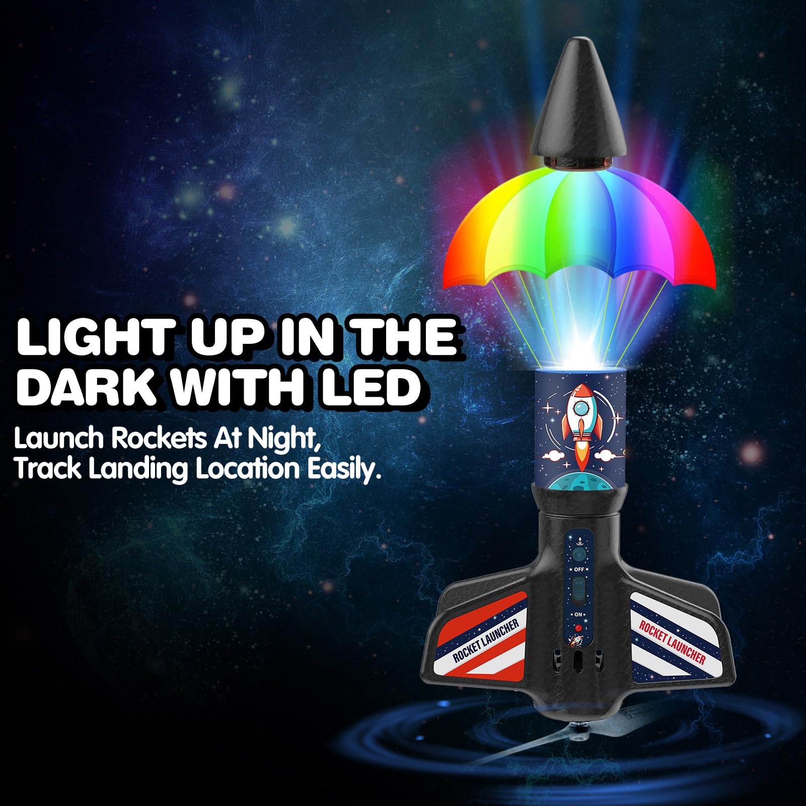 - Q: Does the Rocket Launcher have any features for night use? A: Yes, the Rocket Launcher is equipped with LED lights, making it visually captivating during night launches. This feature allows children to track the rocket's illuminated path, making it easier to locate in the dark.