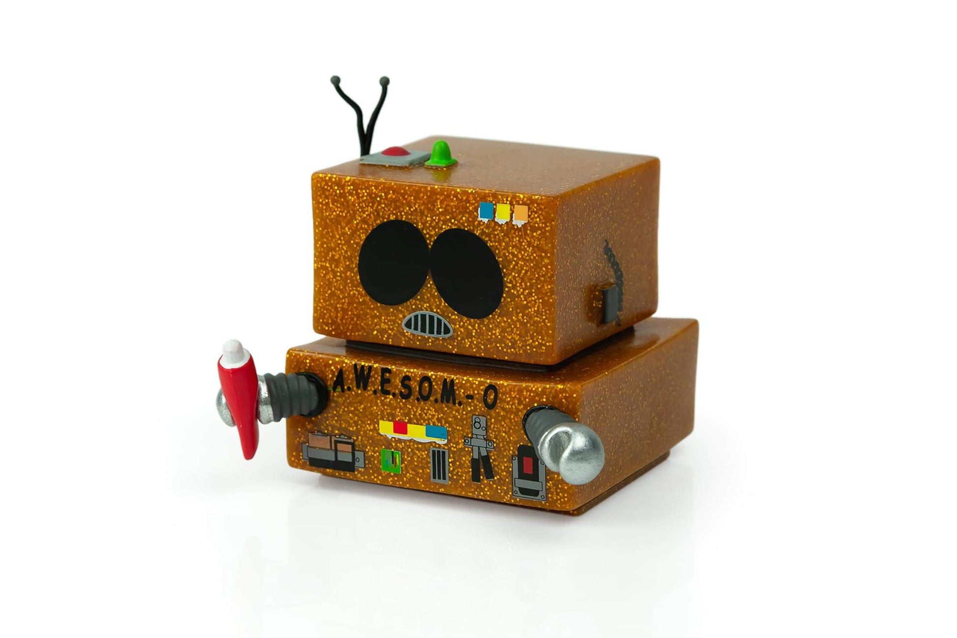 - Q: What makes this A.W.E.S.O.M.-O figure a unique collectible? A: This figure features a special glitter design and is an exclusive variant that originally debuted as a 2017 Geek Fuel exclusive, making it a standout piece in any South Park collection.