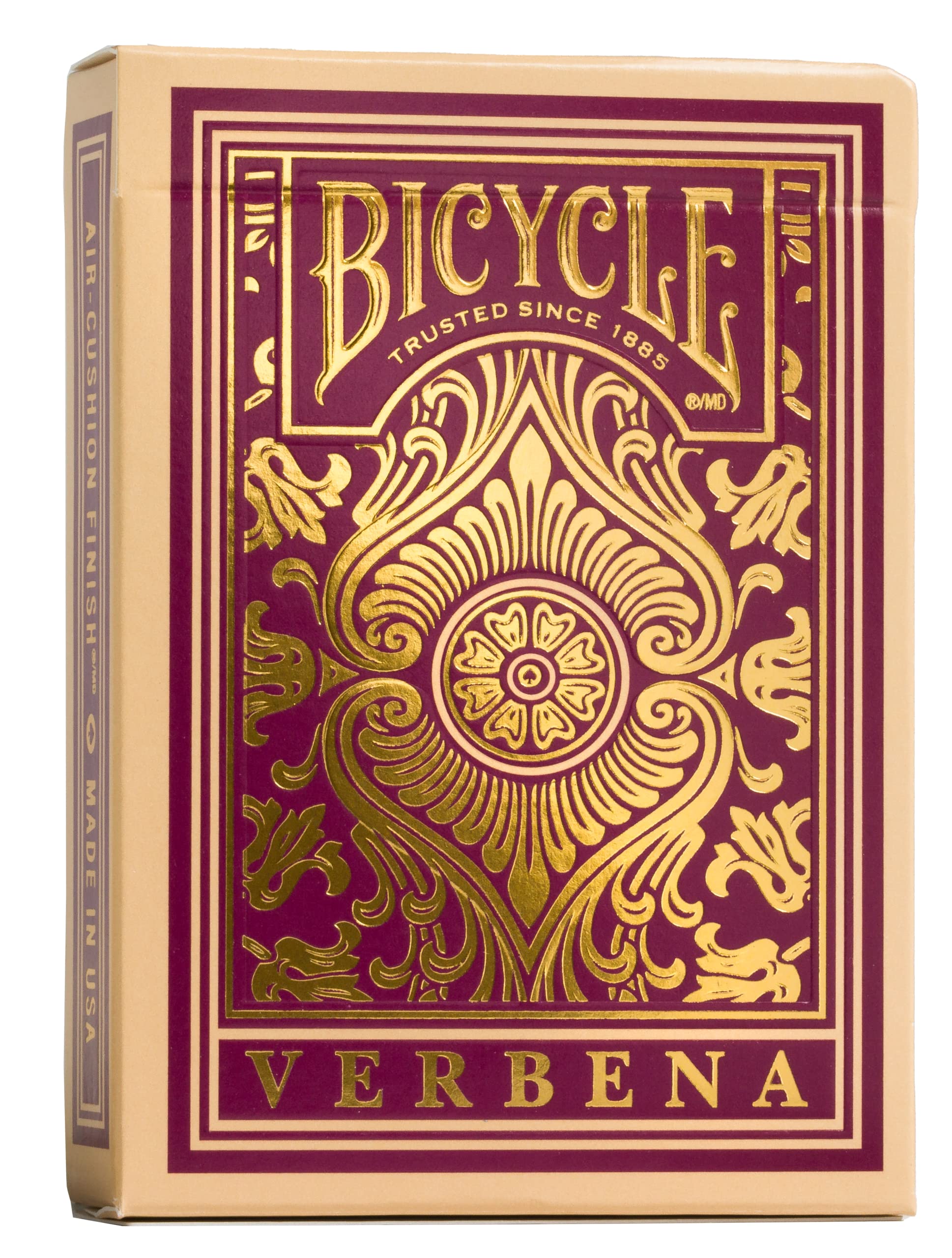 - Q: Do the playing cards come with custom designs? A: Yes, the Bicycle Verbena cards feature custom-designed card backs and recolored court cards, incorporating luxurious gold and deep purple colors that enhance their aesthetic appeal.