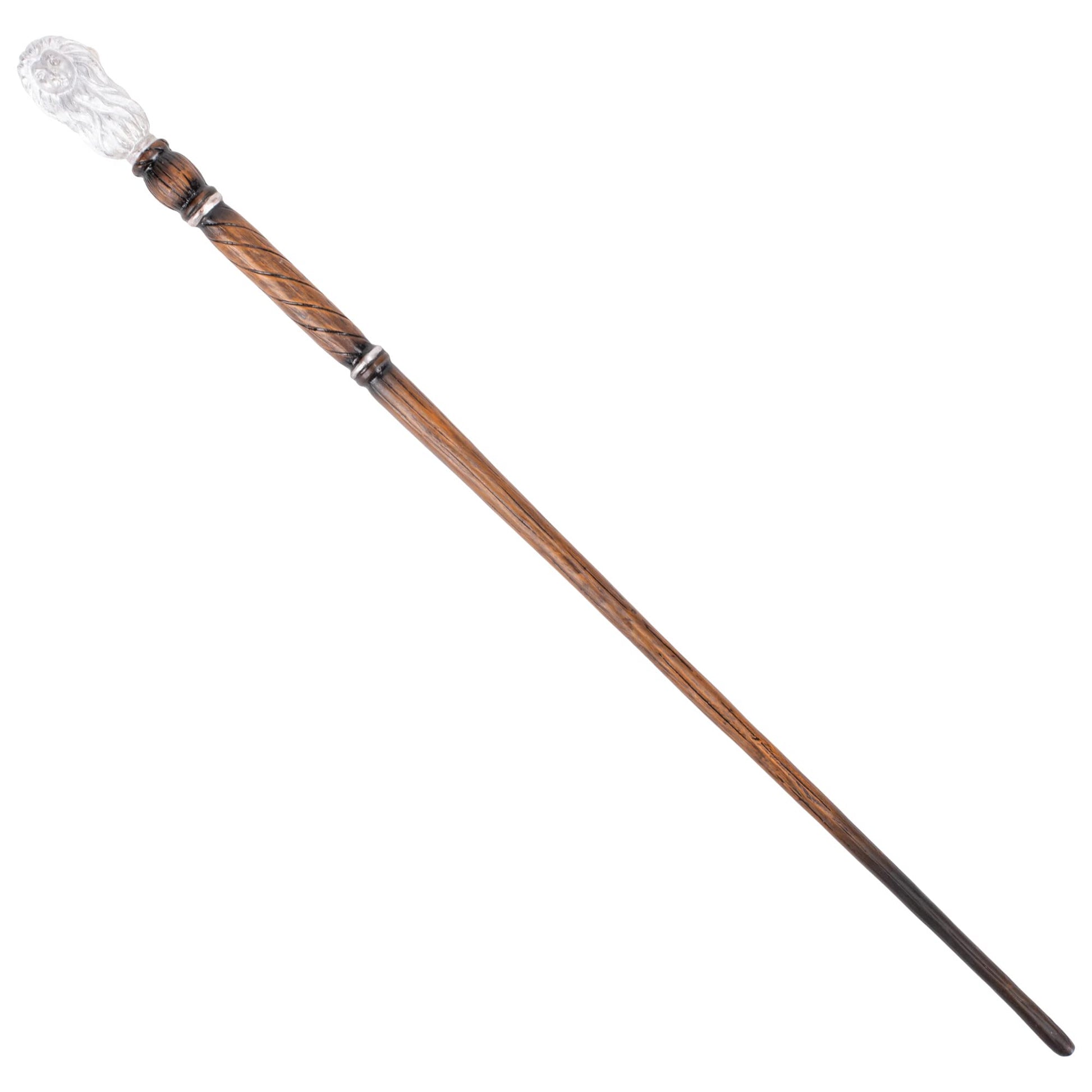 Beautiful designed magical accessory is made to look like woodgrain with silver tone lion design and exquisite details; Every aspiring wizard or witch needs a wand before catching the train back to school | Cast of resin from an original hand carving with natural look; Solid weight makes for a satisfying and authentic feel when held; Steel core prevents warping and and makes the wand extra strong | Wand measures approximately 13.75 inches; Great for display with a collection, on its own, or for a cosplay adventure | Perfect for an imaginative journey to the magical world of witchcraft and wizardry | Packaged in protective box with fitted foam holder; Ready for giving to that special someone
