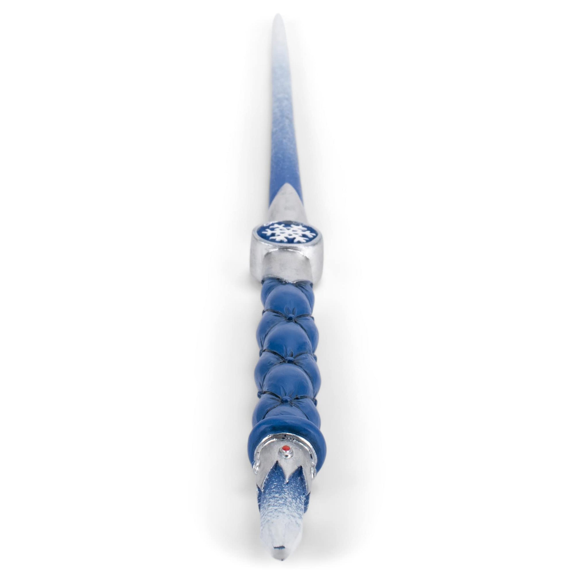 Beautiful designed magical accessory is made with silver tone and blue snowflake design and exquisite blue tufted details; Every aspiring wizard or witch needs a wand before catching the train back to school | Cast of resin from an original hand carving with natural look; Solid weight makes for a satisfying and authentic feel when held; Steel core prevents warping and and makes the wand extra strong | Wand measures approximately 13.75 inches; Great for display with a collection, on its own, or for a cosplay adventure | Perfect for an imaginative journey to the magical world of witchcraft and wizardry | Packaged in protective box with fitted foam holder; Ready for giving to that special someone