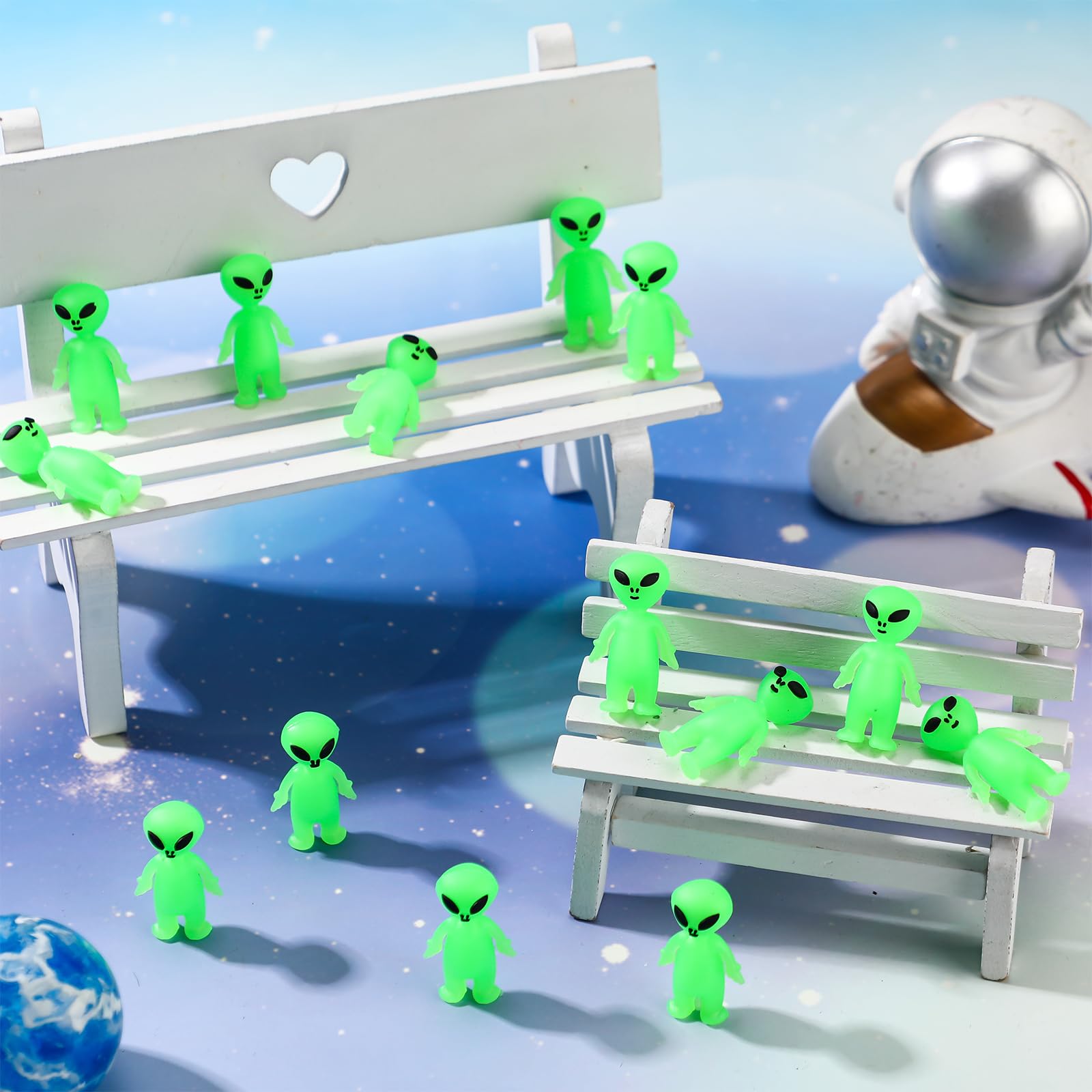- Q: Can these alien figures be used for parties and events? A: Yes, these glow in the dark alien figurines are perfect for various events such as Halloween parties, space-themed celebrations, and as goodie bag fillers.