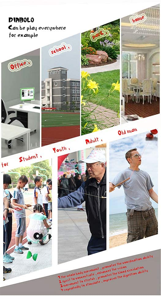 Features: - Perfect Size For Speed And Handling. High Quality Rubber Material, Efficient Shock Absorption, Anti-Impact And Broken-Resistant. - Hand Sticks Have Foam Handles For Superior Grip To Save Efforts. Durable Copper End Can Tie The String Tightly To Avoid Loosening. -With Colorful Led Light,Can Play In Dark Places Or At Night,So Cool & Dazzle!!!(Led Style) - Full Length String Can Be Shortened For Smaller Players. Come With One Standby String In Case That Your First String Wears Out. - Net Bag Makes It Easy To Carry With You And Keeps Your Yoyo Set In Place. Specifications: Body Material:Tpr Rubber Safe&Stable Material (Five Bearings) Bearing: Triple Bearings Diameter: 5.11Inch Height: 5.9 Inch Color: Random Weight: 240G(Triple Bearings)/265G(Five Bearings) Package Included: 1 * Chinese Yoyo Diabolo 2 * Hand Sticks 1 * String 1 * Standby String 1 * Net Bag Warning: ?There Might Be Slight Color Deviation Due To Different Displays. ?Due To Different Measure Way, There Is A Certain Size Error, Error In About 1 To 3 Cm. Notice The Clear Style Diabolo Is Not With Led Light. The Led Style Diabolo With Led Light Only,Please Pay Attention.