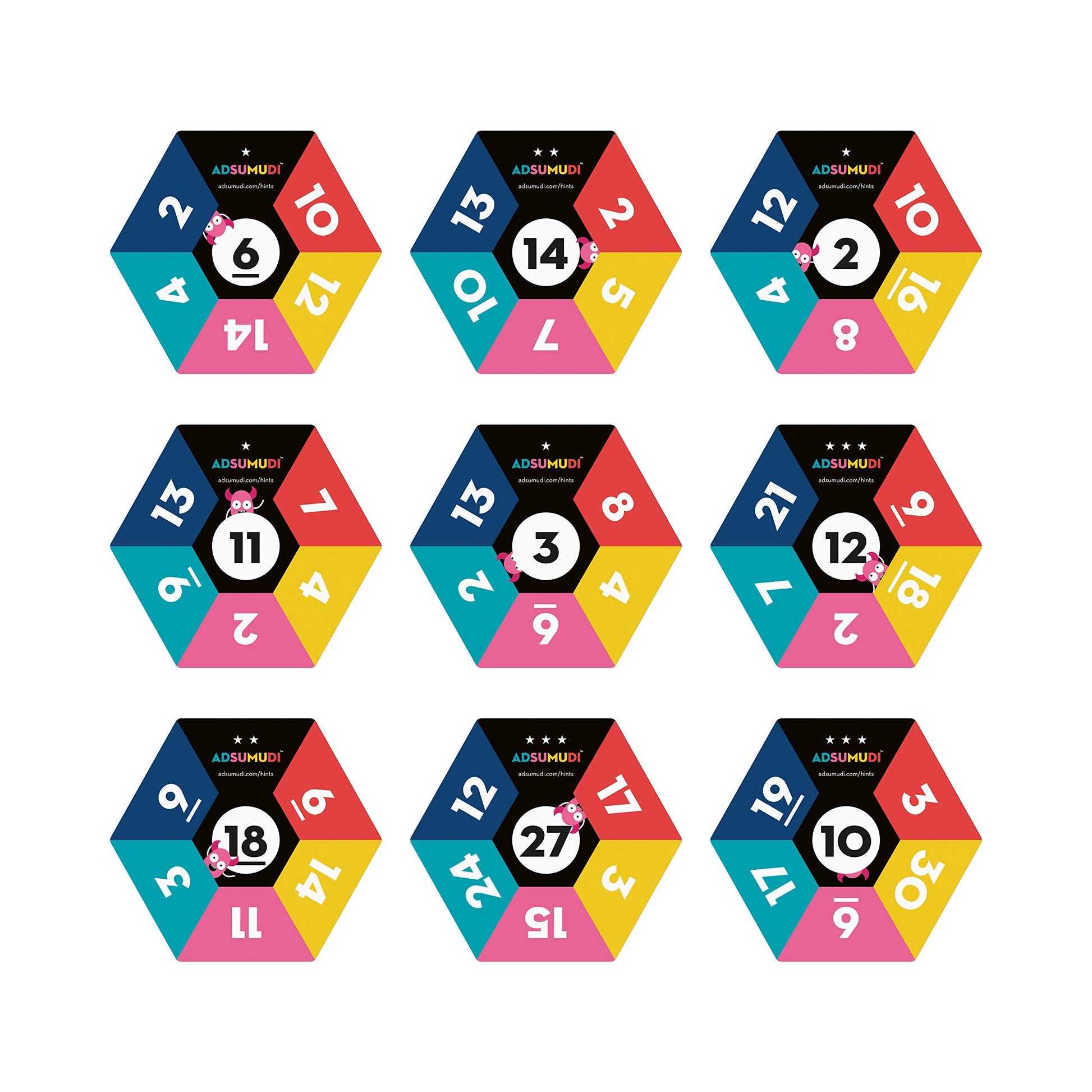 Can you unravel the mystery behind Adsumudi's name? Hint: it’s all about ADdition, SUbtraction, MUltiplication, and DIvision! Adsumudi is not just a game; it's an exciting way to sharpen your mental math skills while having fun! This innovative card game challenges players to find the secret math path to Adsumudi’s answer on each card by using the five other numbers provided.