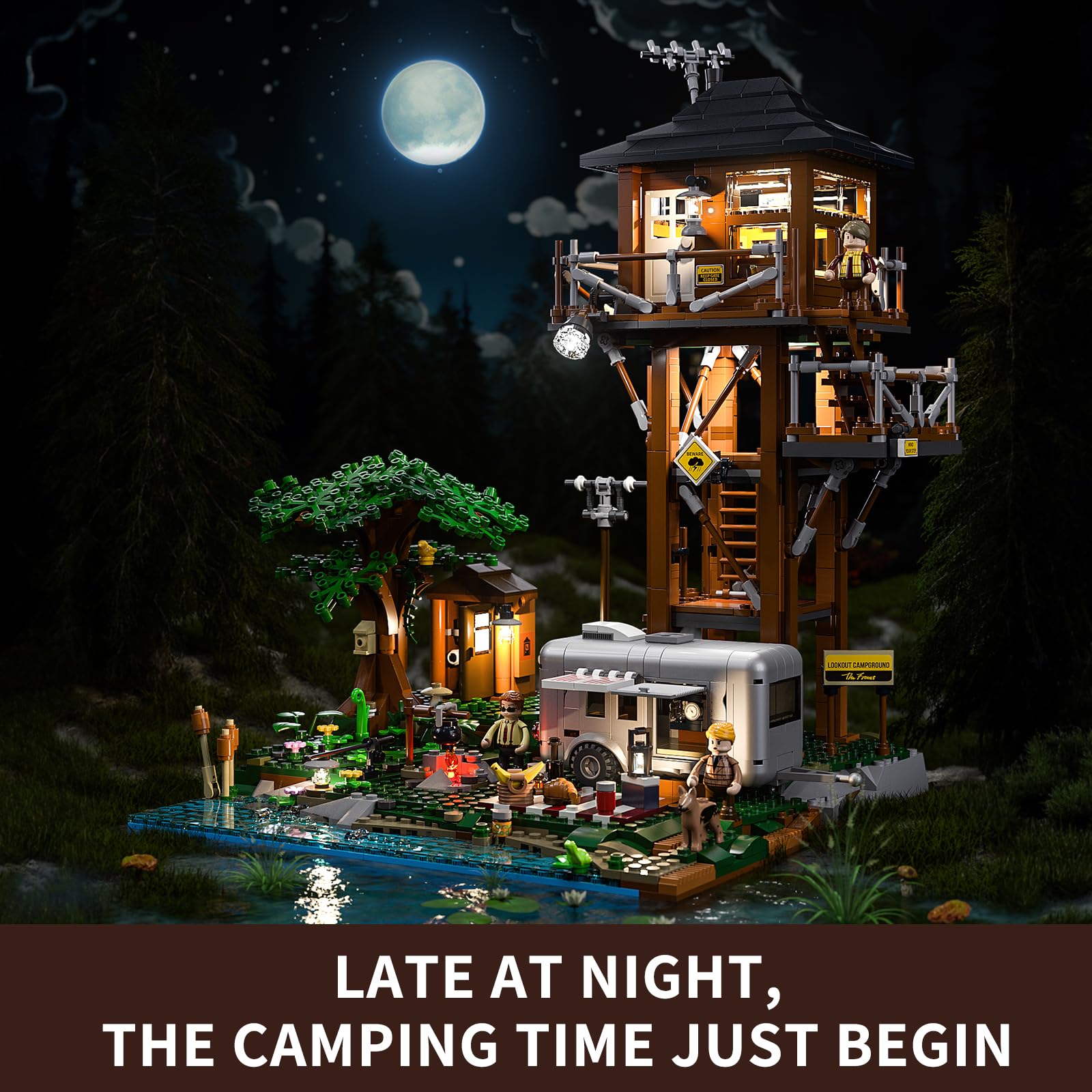 Funwhole Lookout Campground Lighting Building-Bricks Set - Retro Wild Lookout Tower Camping Car And Family Minifigures Led Light Building Set 1426 Pcs For Adults And Teen