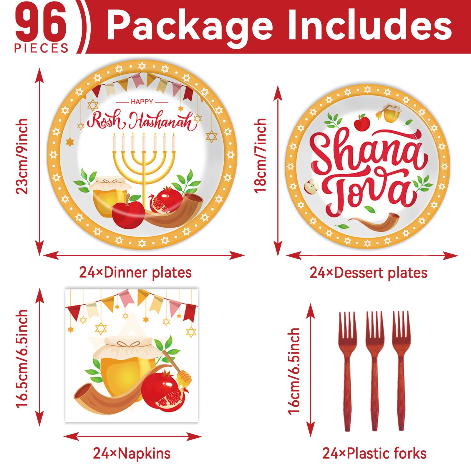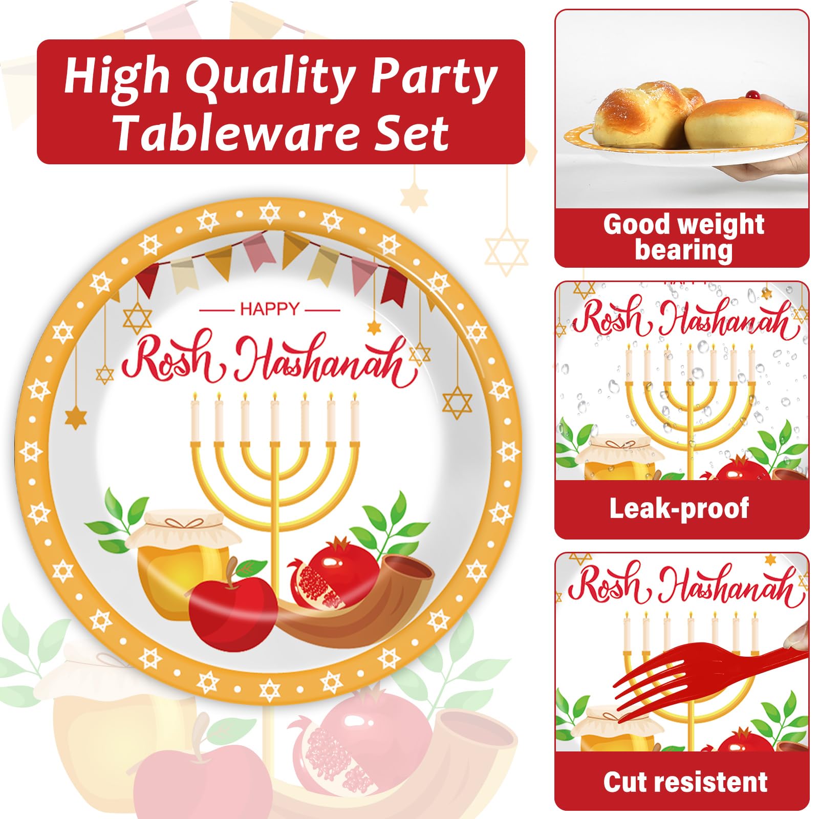 View compareGisgfim 96 Pcs Rosh Hashanah Plates And Napkins Party Supplies Shana Tova High Holy Day Tableware Set Jewish New Year Party Deco