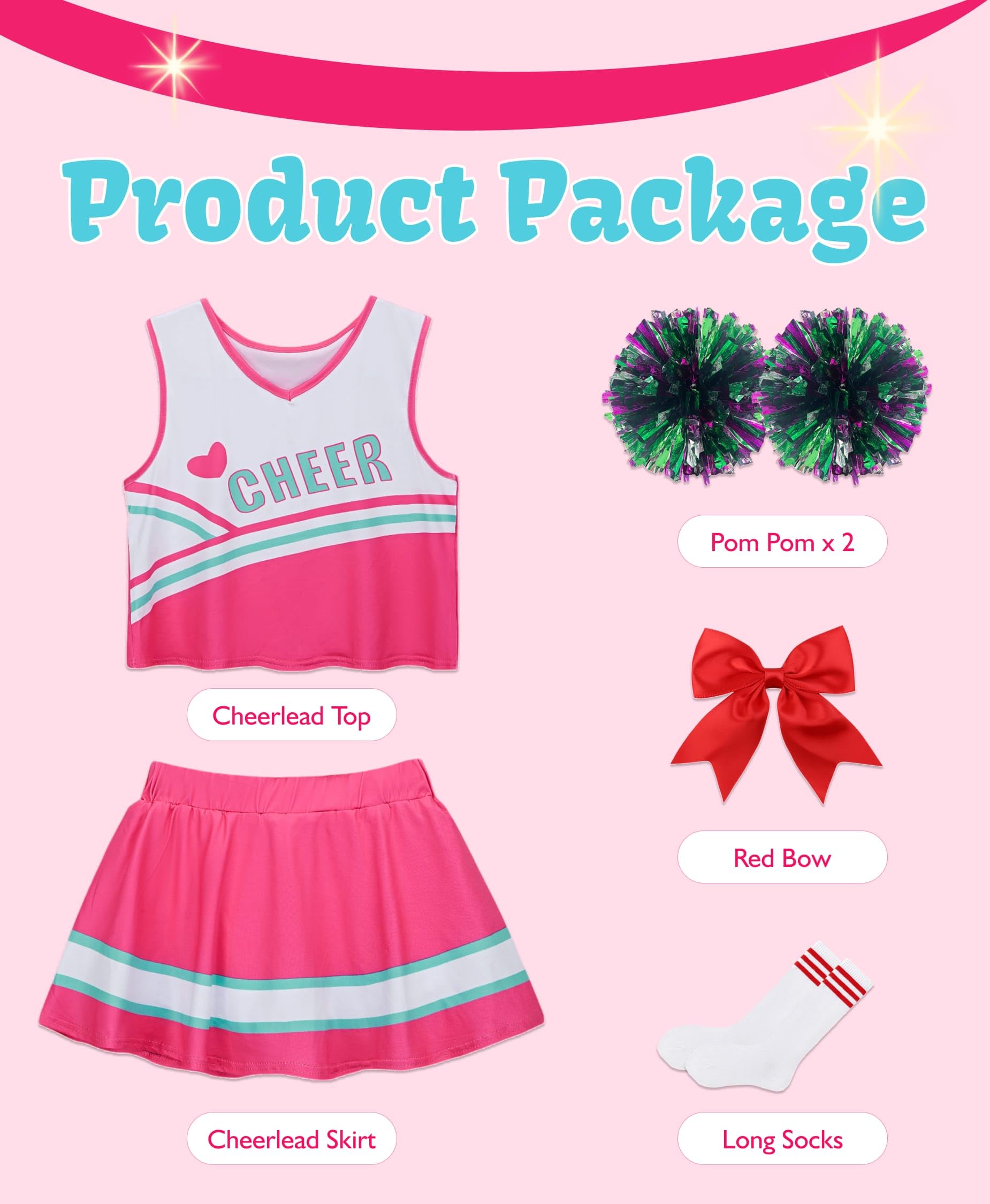 Hanerreal Cheerleader Costume For Girls, Cheer Uniform Dress Up Outfit With Accessories (Pink, Medium(4-5 T))