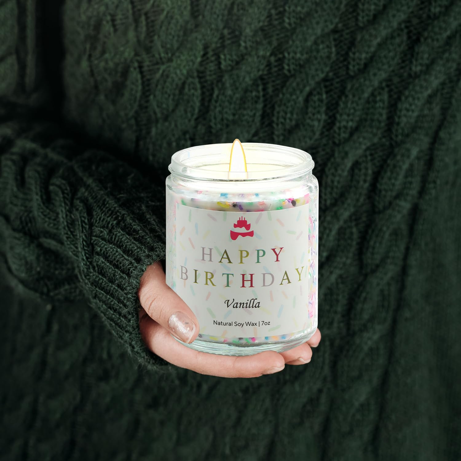 Happy Birthday Candle - Birthday Gifts for Women, Best Friend Birthday Gifts Ideas, Natural Soy Wax Vanilla Scented Candles