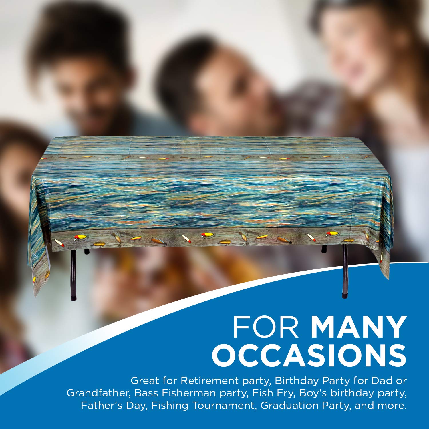 Havercamp Fishing Table Cover! (54x108) Rectangular Heavy Plastic Cover. Beautiful lakewater Background with Antique Lures. Gone