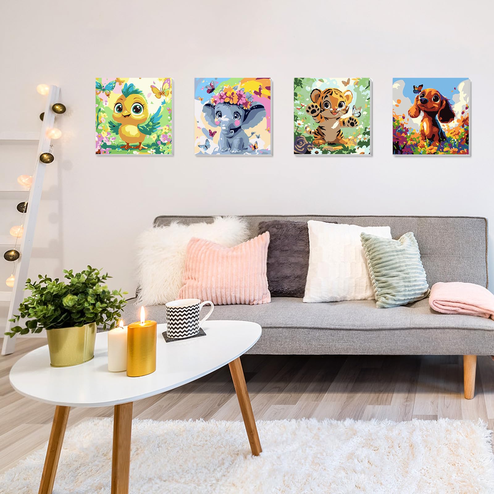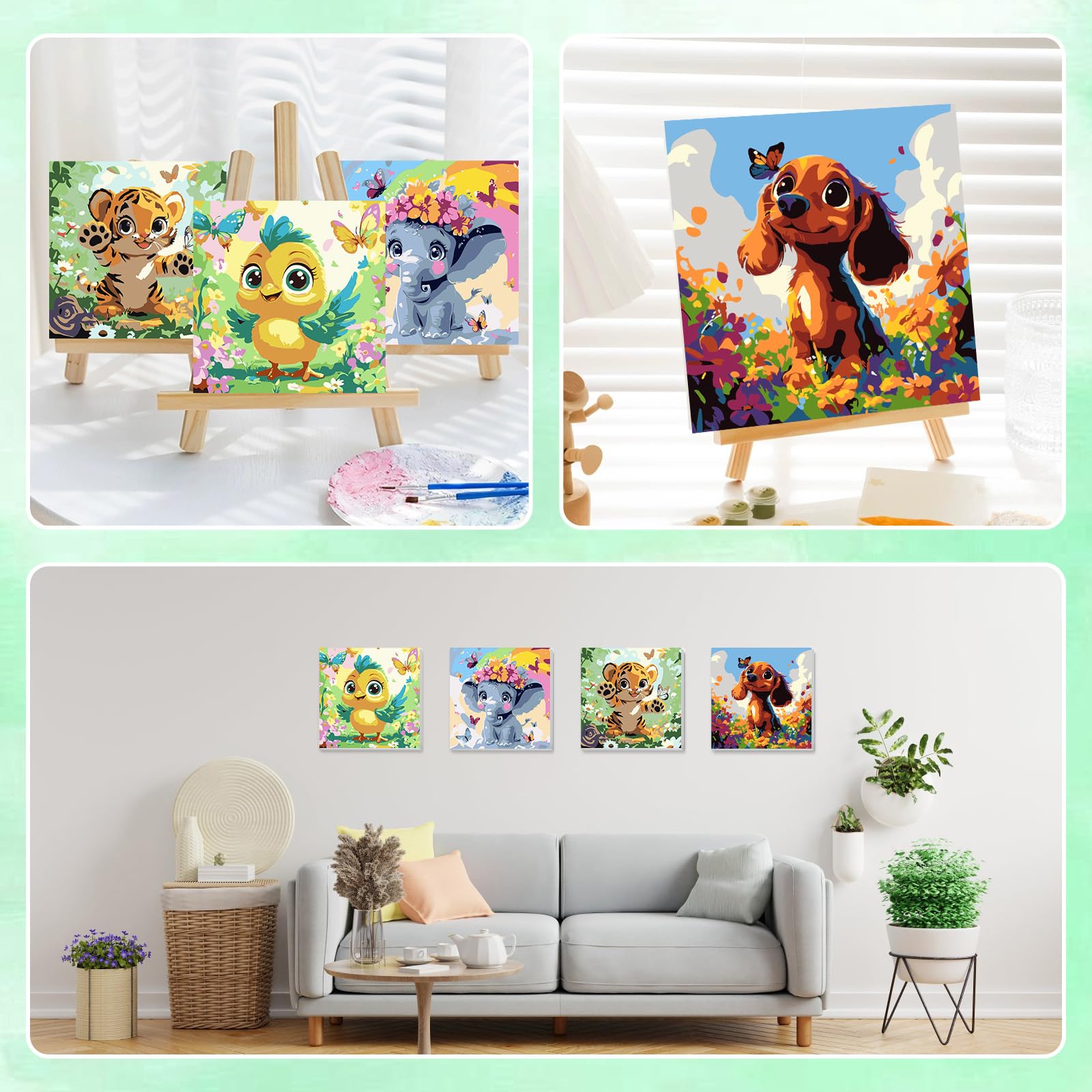 HEIBAGO Framed 4 Pack Paint by Number for Kids,Paint by Numbers for Beginners, Cute Animals Paint by Numbers kit for Kids, DIY A