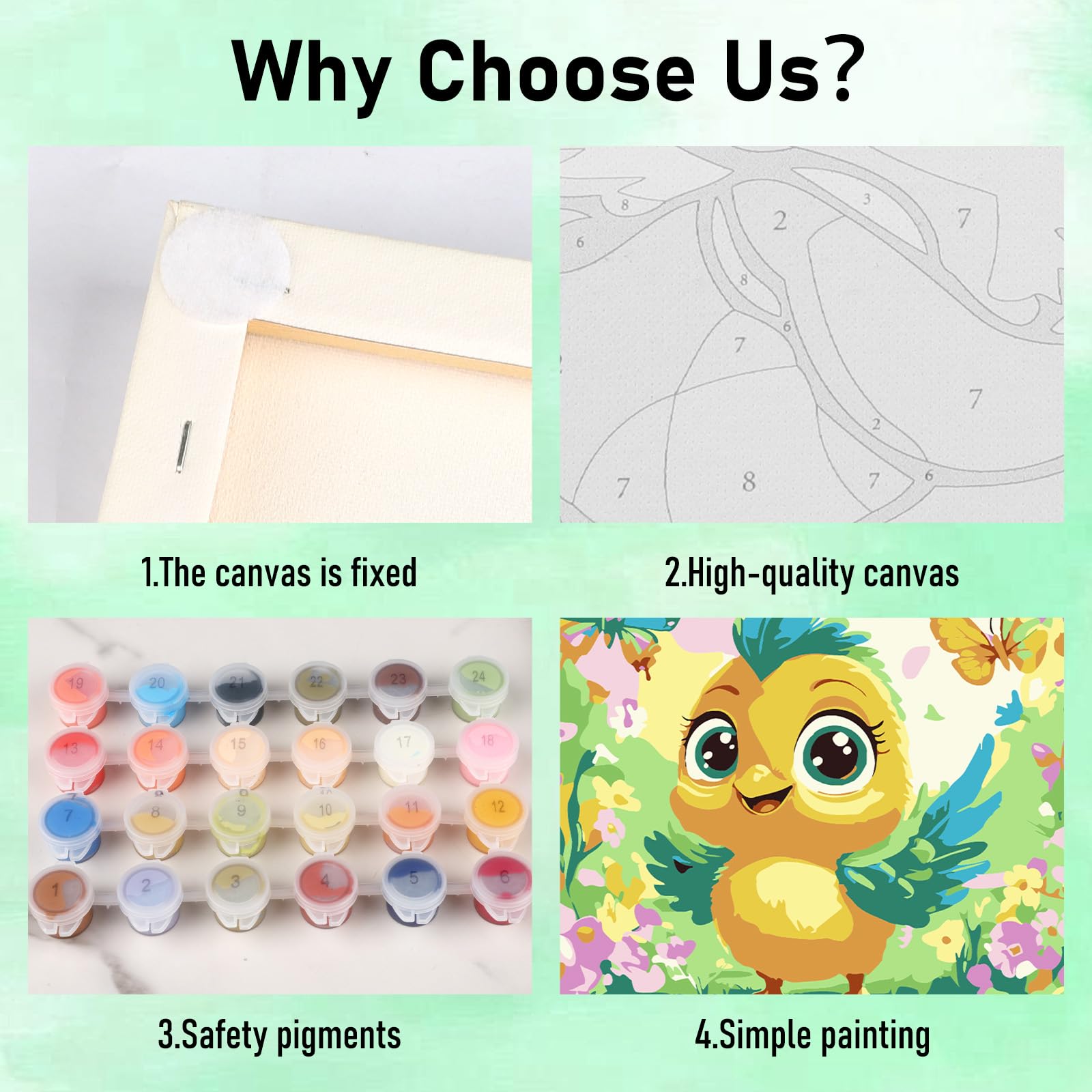 Why Choose Framed Paint by Numbers for Kids? 1.Paint by numbers for kids not only provides us with an artistic creation experience, but also converts paintings into lines and digital symbols through special processes, allowing people to create unique works of art with their own hands. 2.After completing your own work of art, you can hang it in your living room or bedroom so that your family and friends can appreciate your masterpiece, adding an artistic touch to the space. 3.Choosing to give your artwork to your family and friends allows them to witness the imagination and expressiveness of your creation. How do we get started with Paint by Numbers Kits? Creating with Paint by Number Kits is a straightforward process that can be broken down into the following steps: 1.Prepare Your Workspace: Set up a clean and well-lit area where you can comfortably work on your painting. 2.Organize Your Materials: Gather all the materials included in the kit, such as the canvas, paint pots, brushes, and instructions. 3.Study the Numbers: Examine the canvas and familiarize yourself with the numbered areas corresponding to different colors on the paint pots. 4.Start Painting: Begin by painting the numbered areas on the canvas with the corresponding colors from the paint pots. Follow the instructions to ensure accuracy. 5.Work in Sections: Work on one section of the canvas at a time, allowing each area to dry before moving on to the next to prevent smudging. 6.Add Details: As you progress, add finer details and shading to enhance the depth and realism of your painting. 7.Enjoy the Process: Take your time, relax, and enjoy the creative process as you watch your masterpiece come to life. 8.Display Your Artwork: Once completed and fully dried, you can proudly display your Paint by Numbers creation in your home or give it as a thoughtful Present.