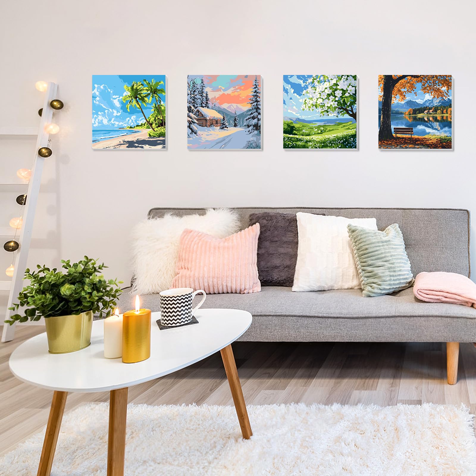 HEIBAGO Framed Paint by Numbers kit for Kids, 4 Pack Landscapes Paint by Numbers for Kids Ages 8-12, Paint by Numbers Kits Child