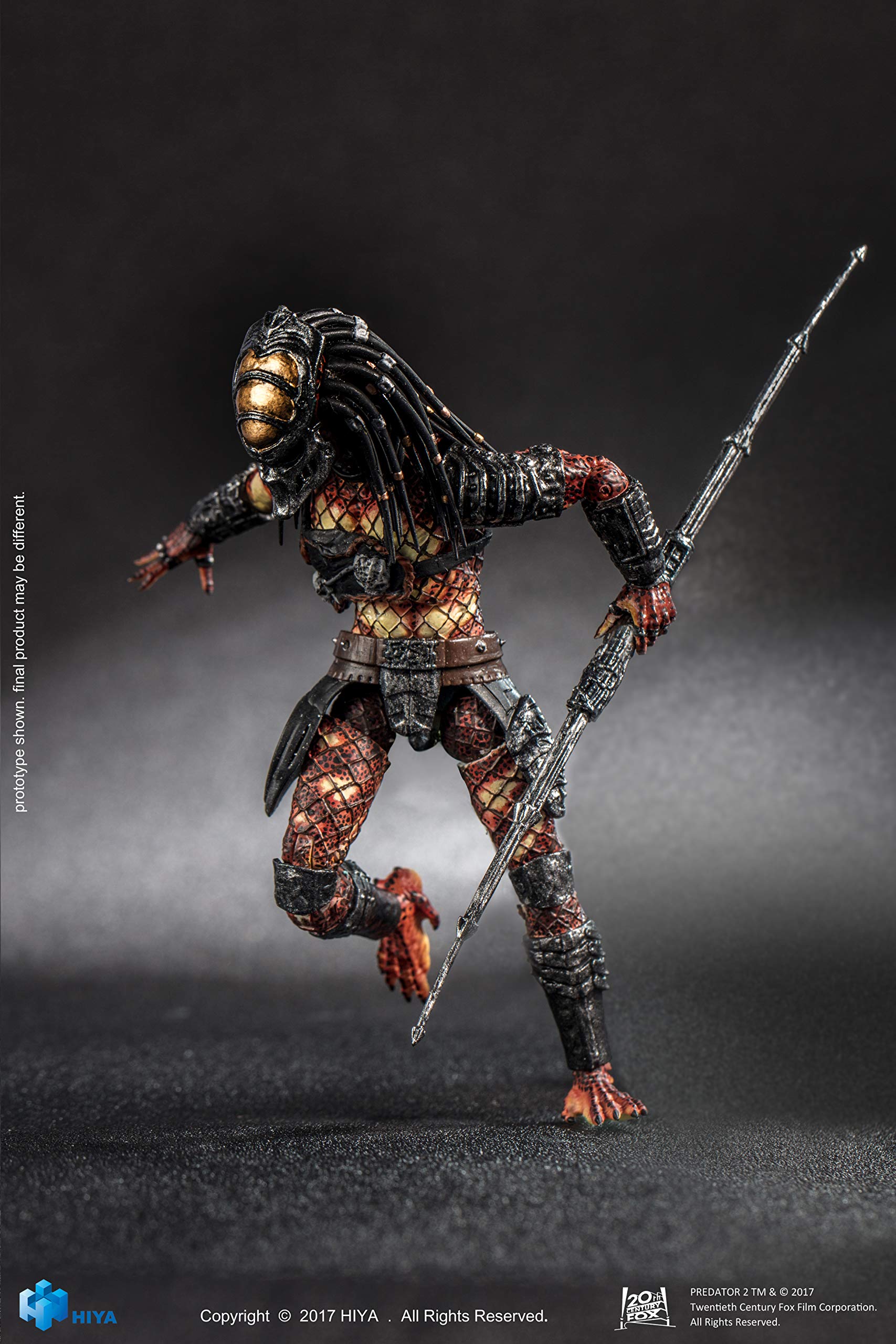From Hiya Toys. Predator 2, the action-packed sequel to the original movie moved the hunt to Los Angeles where, even on the streets of the city of Angels, the Predator stalks his prey with deadly precision. This 1/18-scale figure features full articulation and stands approximately 4 1/2' Tall. This boar predator figure comes with staff accessories and a stand for easy posing and display.