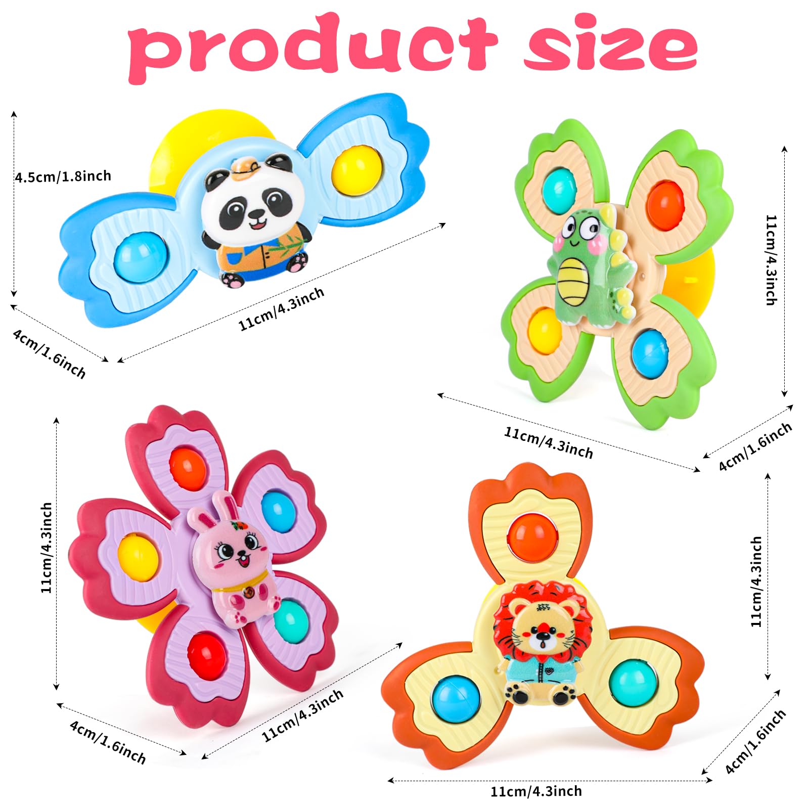 Jofony 4 Pcs Suction Cup Spinners Toys For Baby,Spinning Toy For Baby 3-18 Months Toddlers Sensory Activity Fidget Bath Toy Educ
