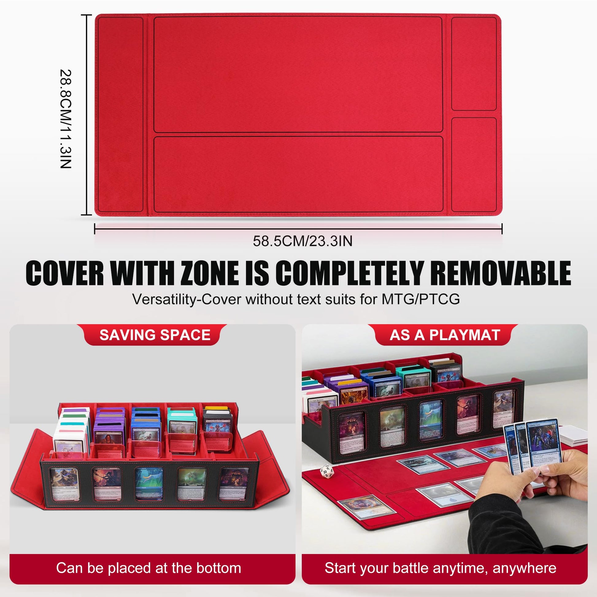 - Magnetic Closure: The removable cover, which features no text, attaches securely to the card box with powerful magnets. Easily remove and place it at the bottom to save space, doubling as a playmat for MTG/PTCG or providing a neat surface for organizing.