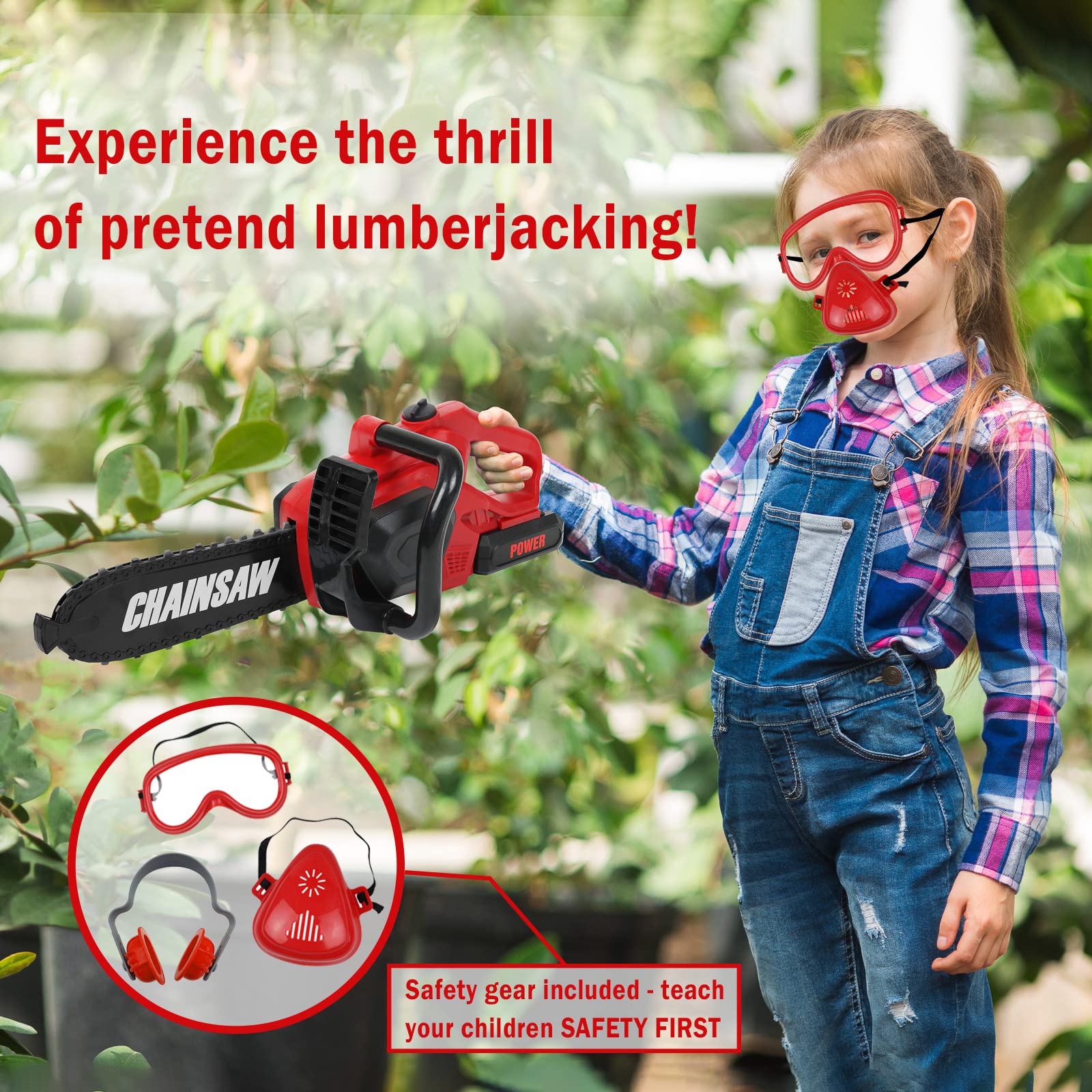 View compareKids Toy Chainsaw With Sound | Toddler Landscaping Gardening Tools And Equipment | Includes Safety Goggles Mask And Earmuffs