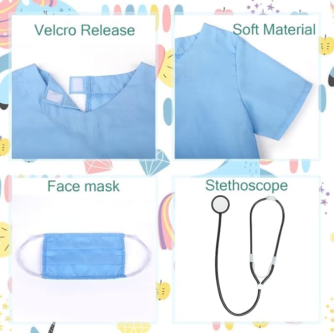 - Q: What items are included in the doctor scrubs costume set? A: The doctor scrubs set includes a top, a pair of pants, a face mask, and a stethoscope, providing a complete outfit for kids to engage in imaginative role play.