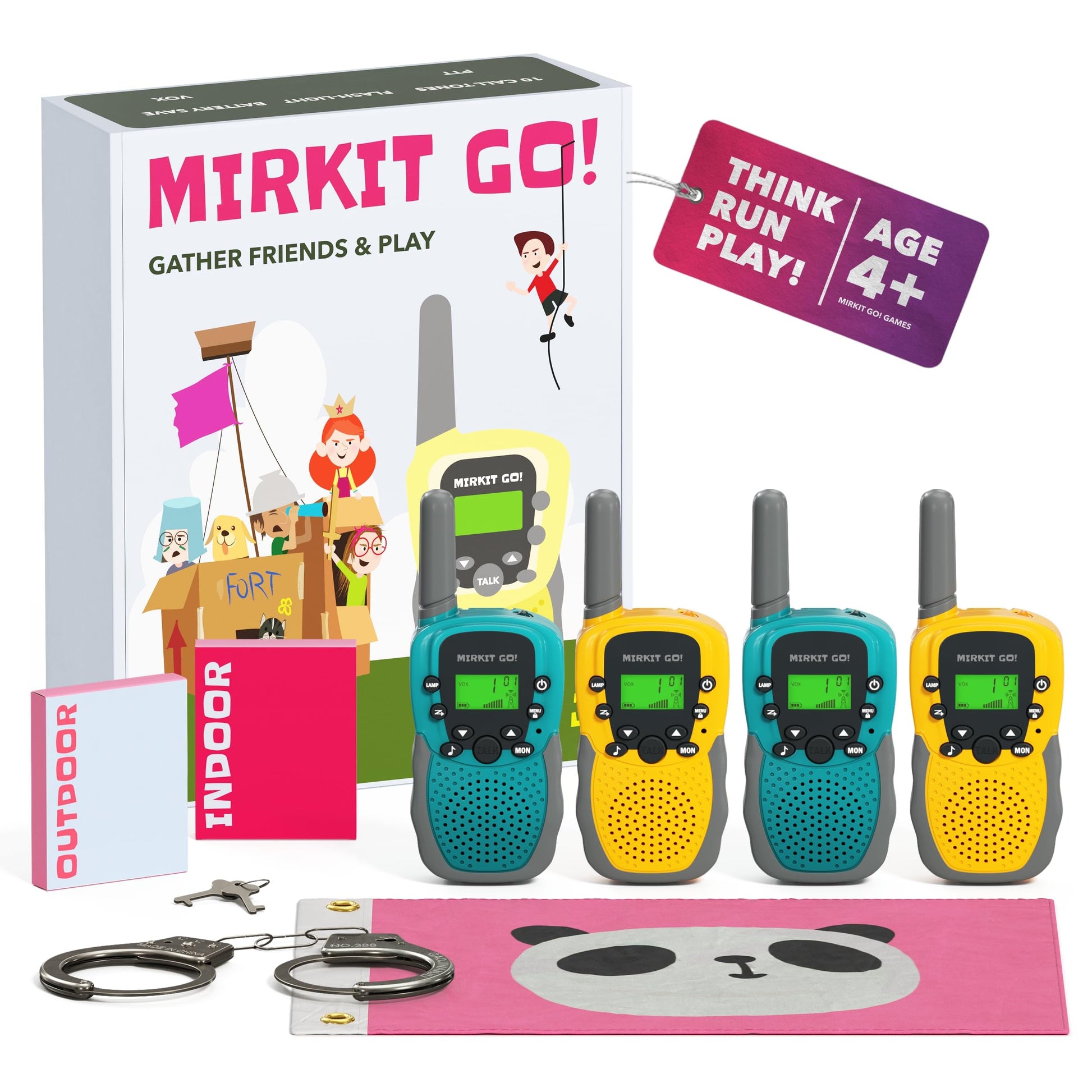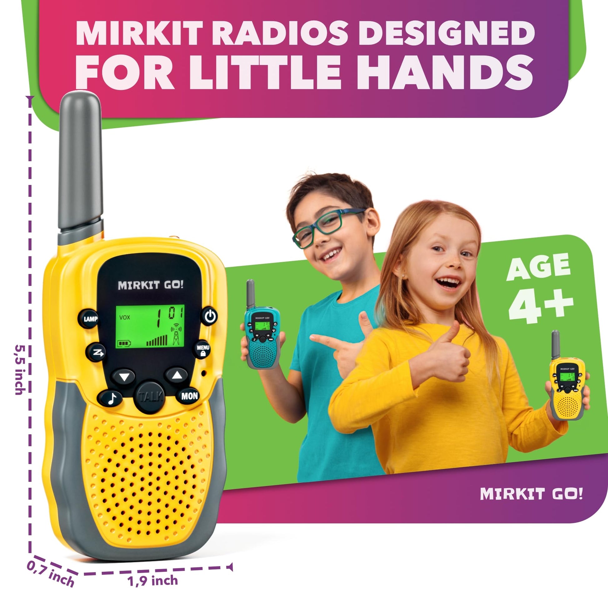 MIRKIT GO! 4X Walkie Talkies for Kids - Yellow & Blue with 4 Fun Games: Scavenger Hunt, Capture The Flag, Police Game, Hide and Seek!