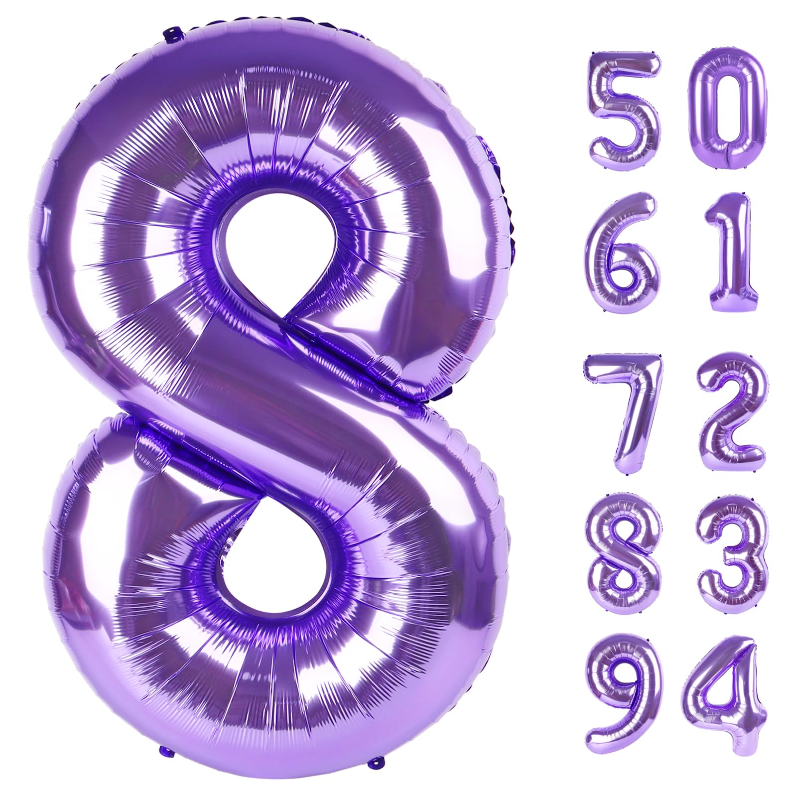 Purple 8 Balloon, Number Balloon 40 Inch, Purple Birthday Decorations, 8 18 28 38 80 Birthday Balloons, 8Th Purple Party Supplie
