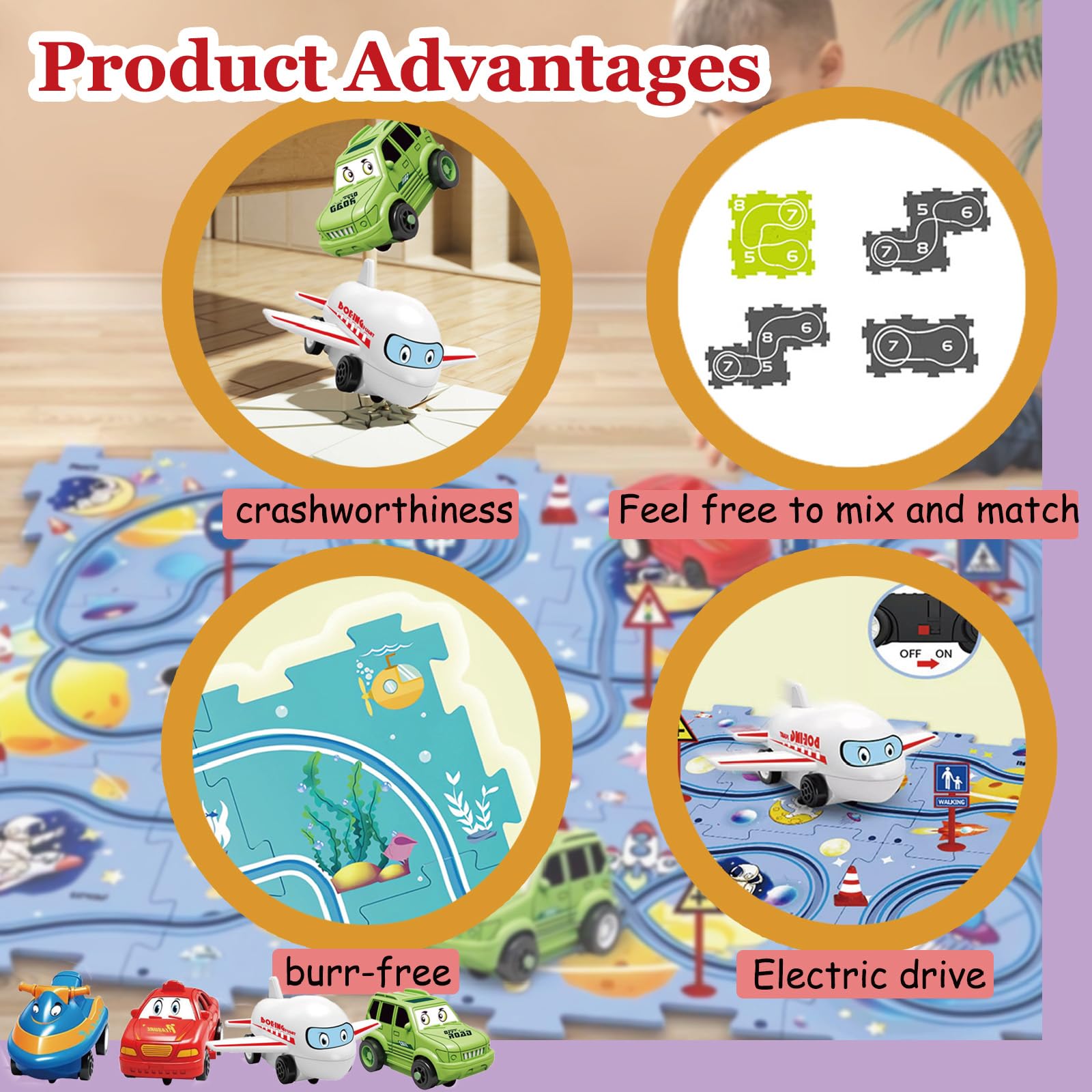 The Puzzle Racer Kids Car Track Set is the ultimate combination of puzzle games and logical route building toys. It allows children to spell out various puzzle modes, offering endless possibilities for creativity. With a variety of tracks, loops, and ramps, this set enables kids to design their own track layouts and enjoy exciting racing adventures. It not only enhances parent-child relationships but also helps in the development of imagination, logical thinking, and problem-solving skills. Made of high-quality ABS material, this track set is safe for kids to play and keeps them away from electronics. It's the perfect gift for birthdays, holidays, and other special occasions, providing endless fun for kids aged 3-8.