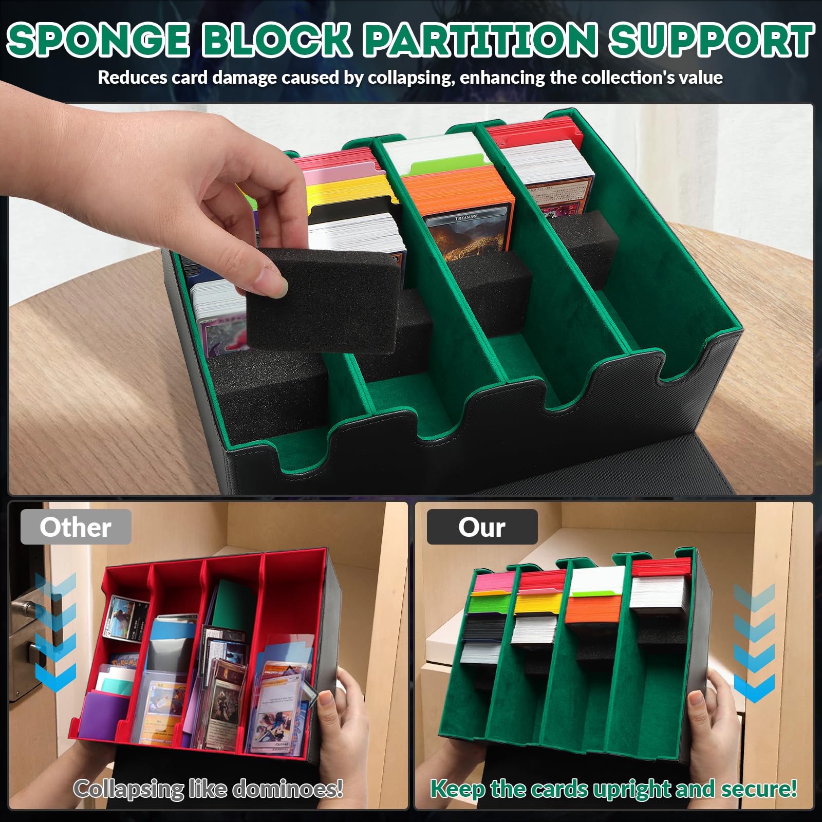 QLOUNI Card Storage Box - 2800+ Deck Case with PU Leather, Magnetic Closure, 10 Dividers & 4 Stoppers, Suitable for MTG, YuGiOh,