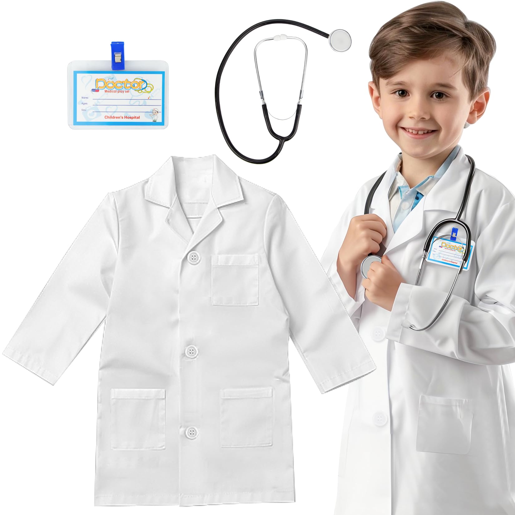 View compareRiorand Kids' Doctor Lab Coat Costume With Accessories Role Play For Boys Girls Playset Nurse Costume Age 3-12 (White, S-120Cm/3-5T)
