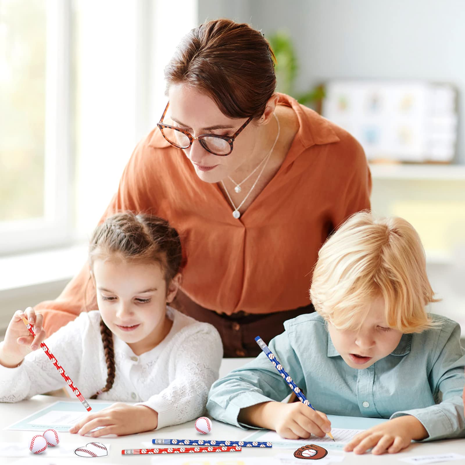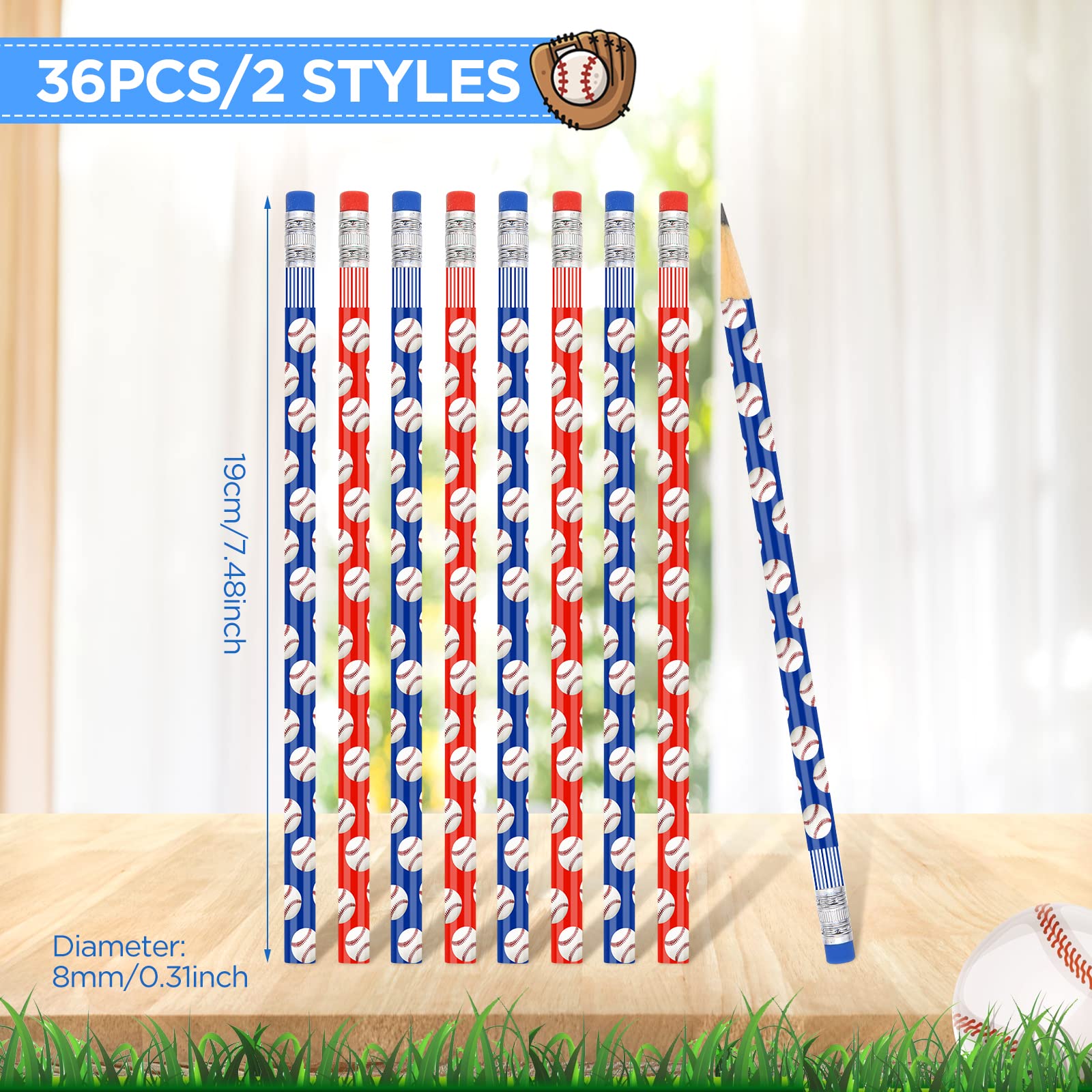 RUMIA 36 Pcs Baseball Pencils for Kids Fun Wooden Pencils with Eraser for Baseball Party Favors for Baseball Birthday Party Stud