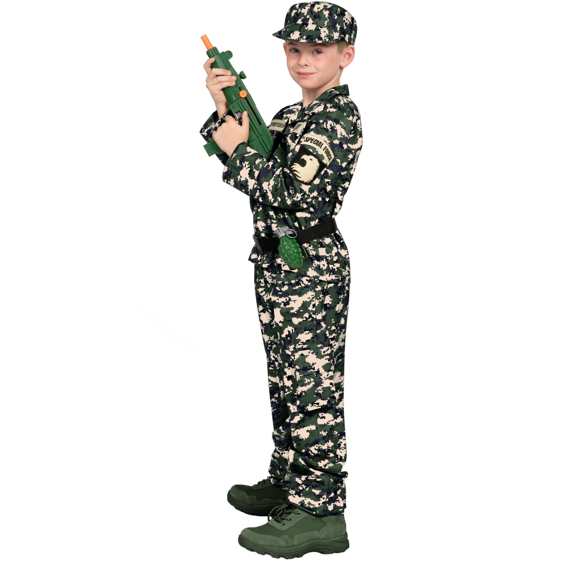 Spooktacular Creations Boys Military Costume, Army Soldier Costume, Dark Green Camo Costume With Toy Accessories For Kids, Boys Halloween Dress Up And Costume Parties