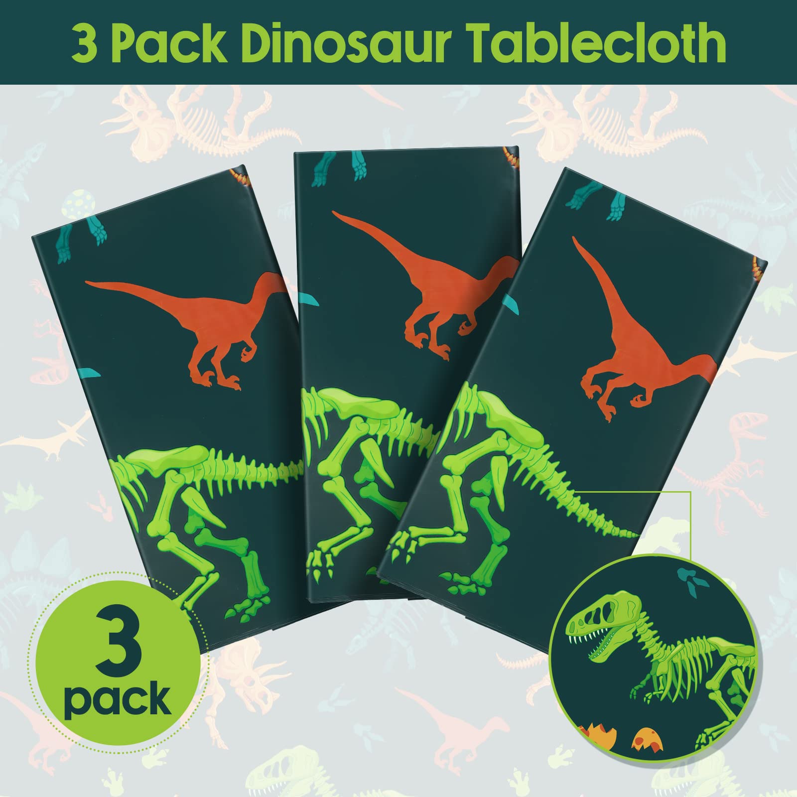 Tudomro 3 Pieces Dinosaur Plastic Party Tablecloth Dinosaur Birthday Table Cover Decorations Disposable Dinosaur Table Cover For