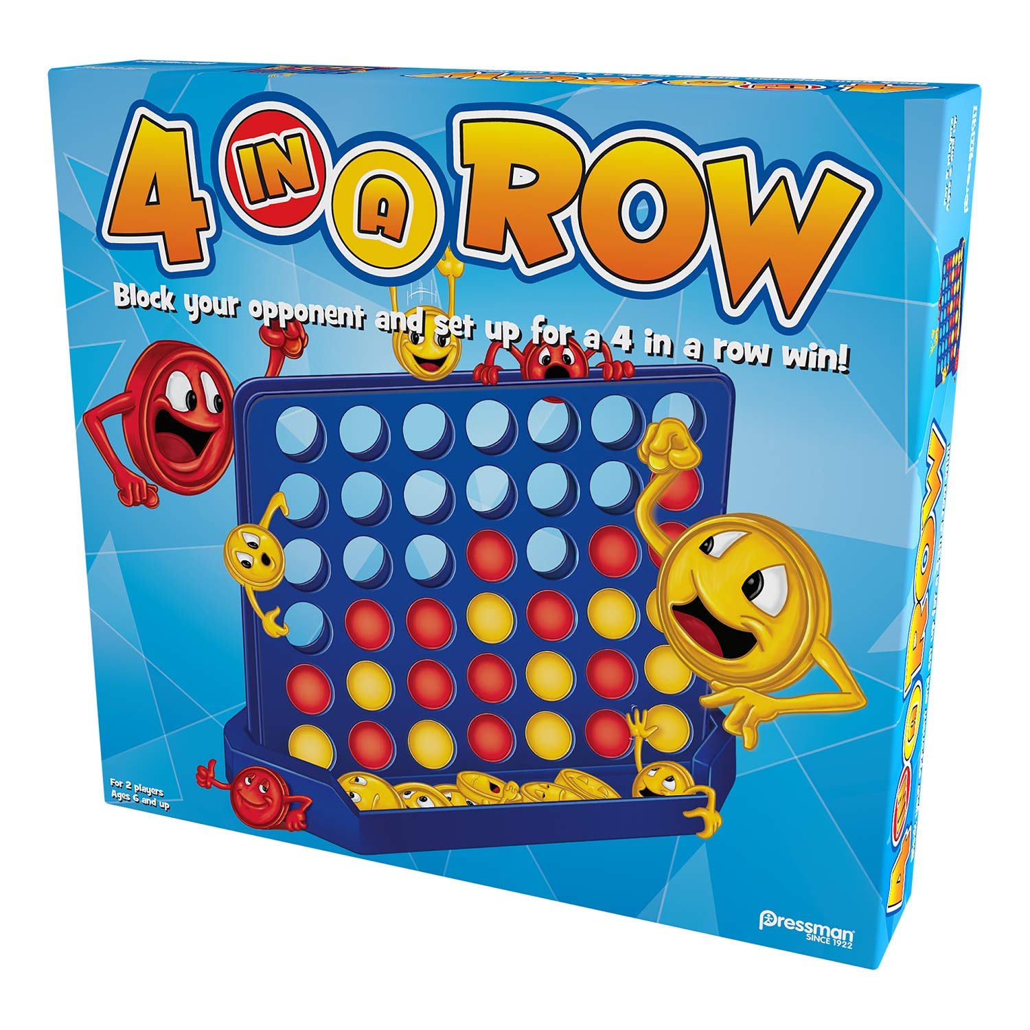 • Q: What age group is the Pressman 4 in A Row game suitable for? A: The Pressman 4 in A Row game is designed for 2 players ages 6 and up, making it a great strategy game for families and friends.