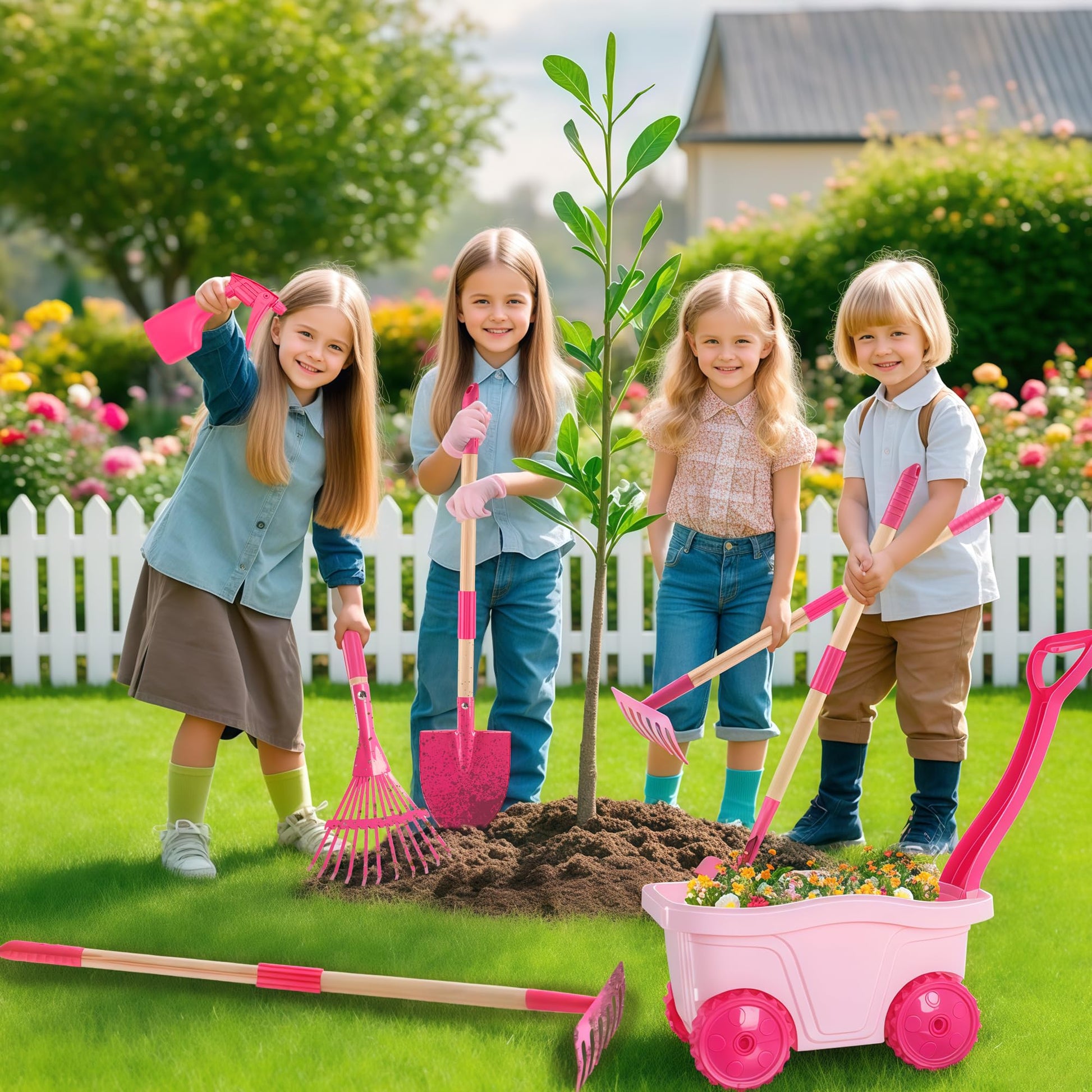 View compareDuckura Kids Gardening Tools Set - 7pcs Wheelbarrow Set for Kids with Shovel Rake Leaf Rake Summer Outdoor Yard Digging Toys Halloween Birthday Gifts for Boys Girls Age 2 3+ Years Old(Pink)