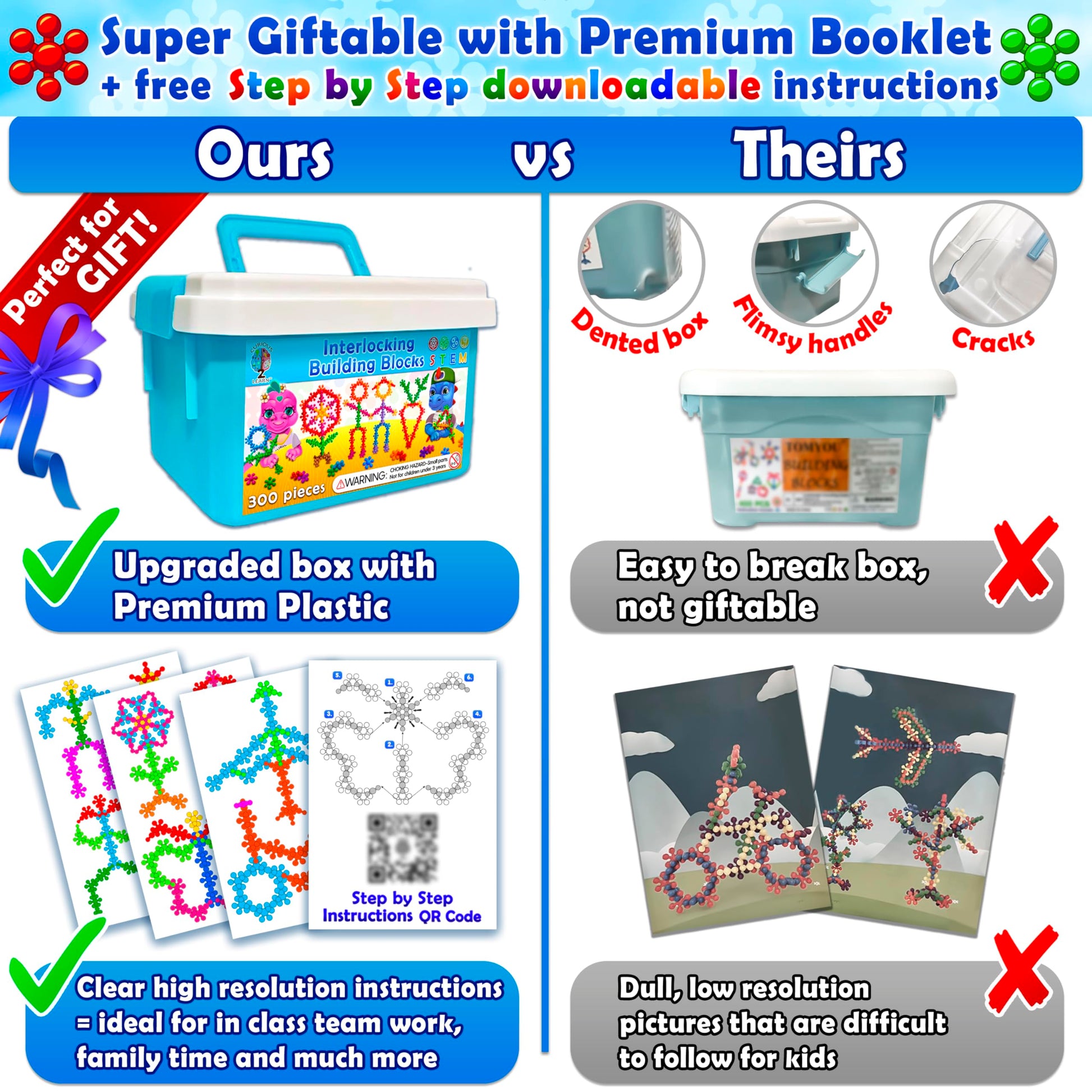 Curious 2 Learn 300 Pieces Building Blocks- Kids Stem Toys Educational Building Toys- Discs Sets Interlocking, Solid Plastic For Preschool Kids Boys And Girls Aged 3+, Creativity Kids Toys