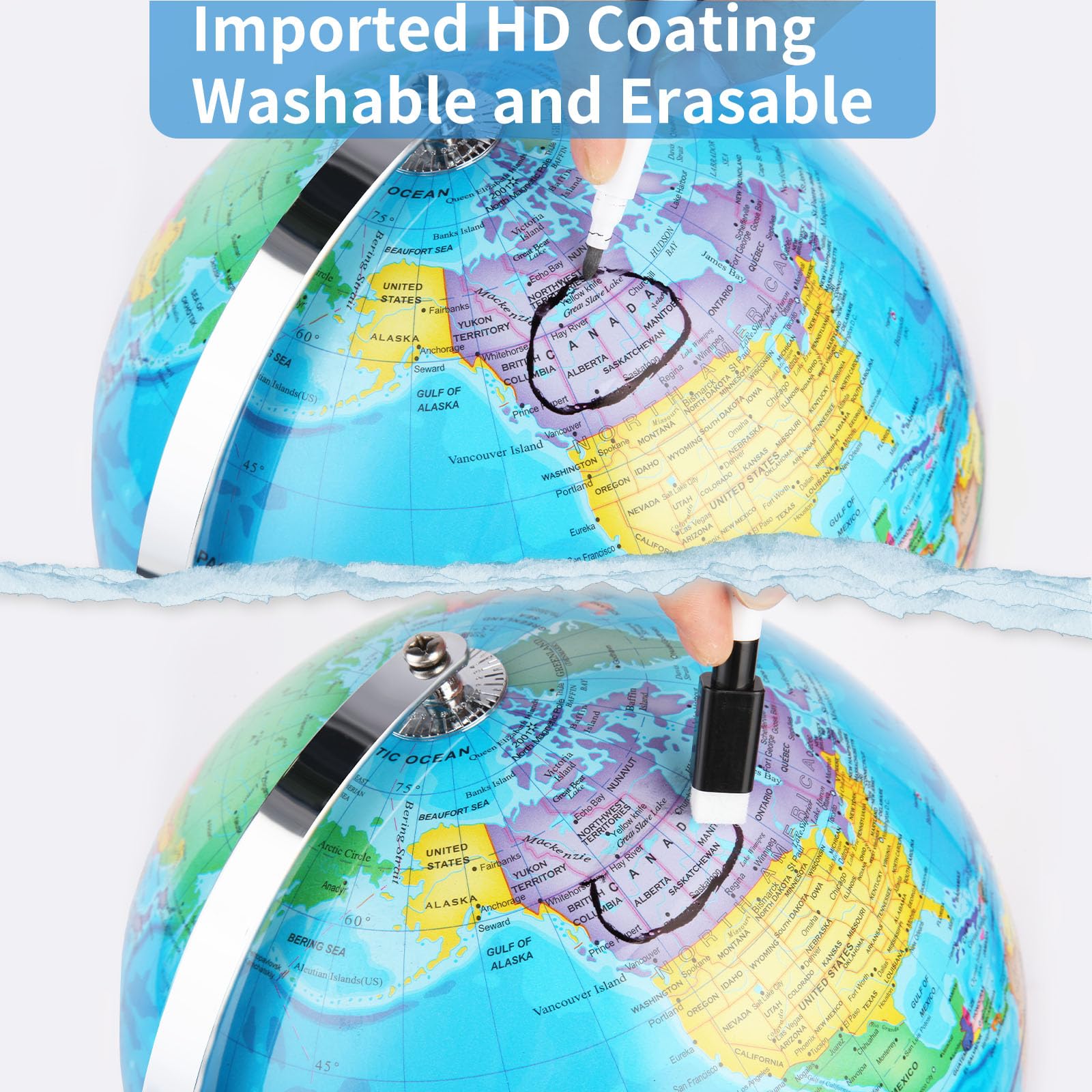 - Q: Can I write on this globe? A: Absolutely! The globe has a rewritable surface that allows you to write and mark with a pen, enhancing its interactivity for educational purposes.