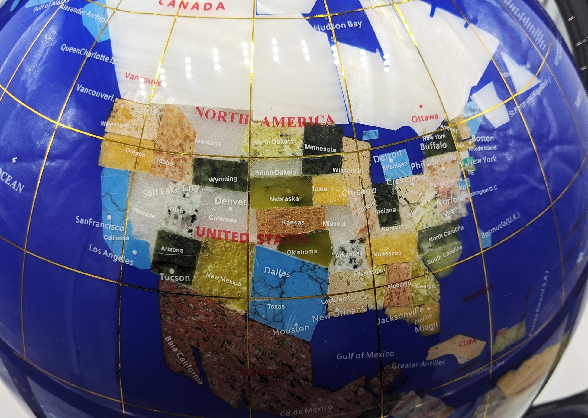 View compareUnique Art 21-Inch Tall Blue Lapis Ocean Table Top Gemstone World Globe With Silver Tripod And Separated State Stones