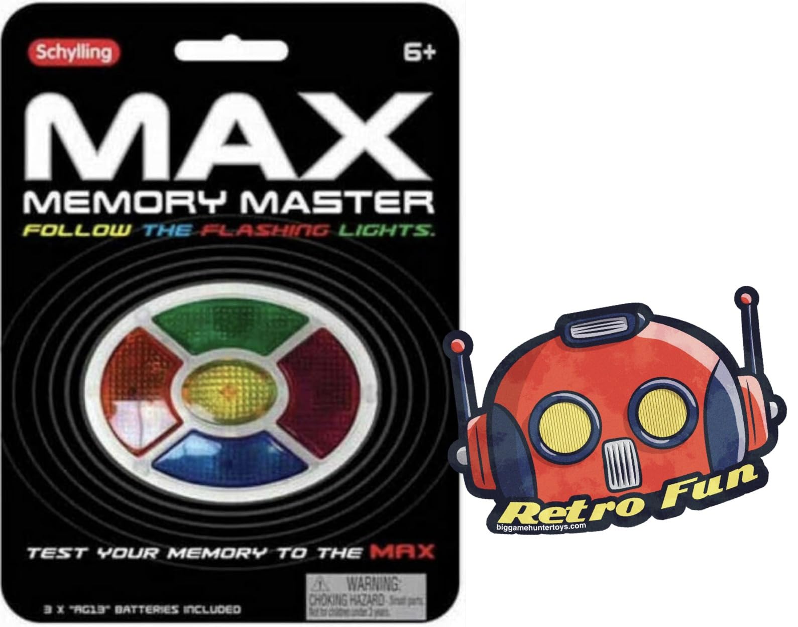 - Q: What is the Max Memory Game and how do you play it? A: The Max Memory Game is a handheld electronic game inspired by the classic Simon Says format. Players must repeat a sequence of lights and sounds correctly to progress through the game. It includes two levels of difficulty, making it suitable for different skill levels.