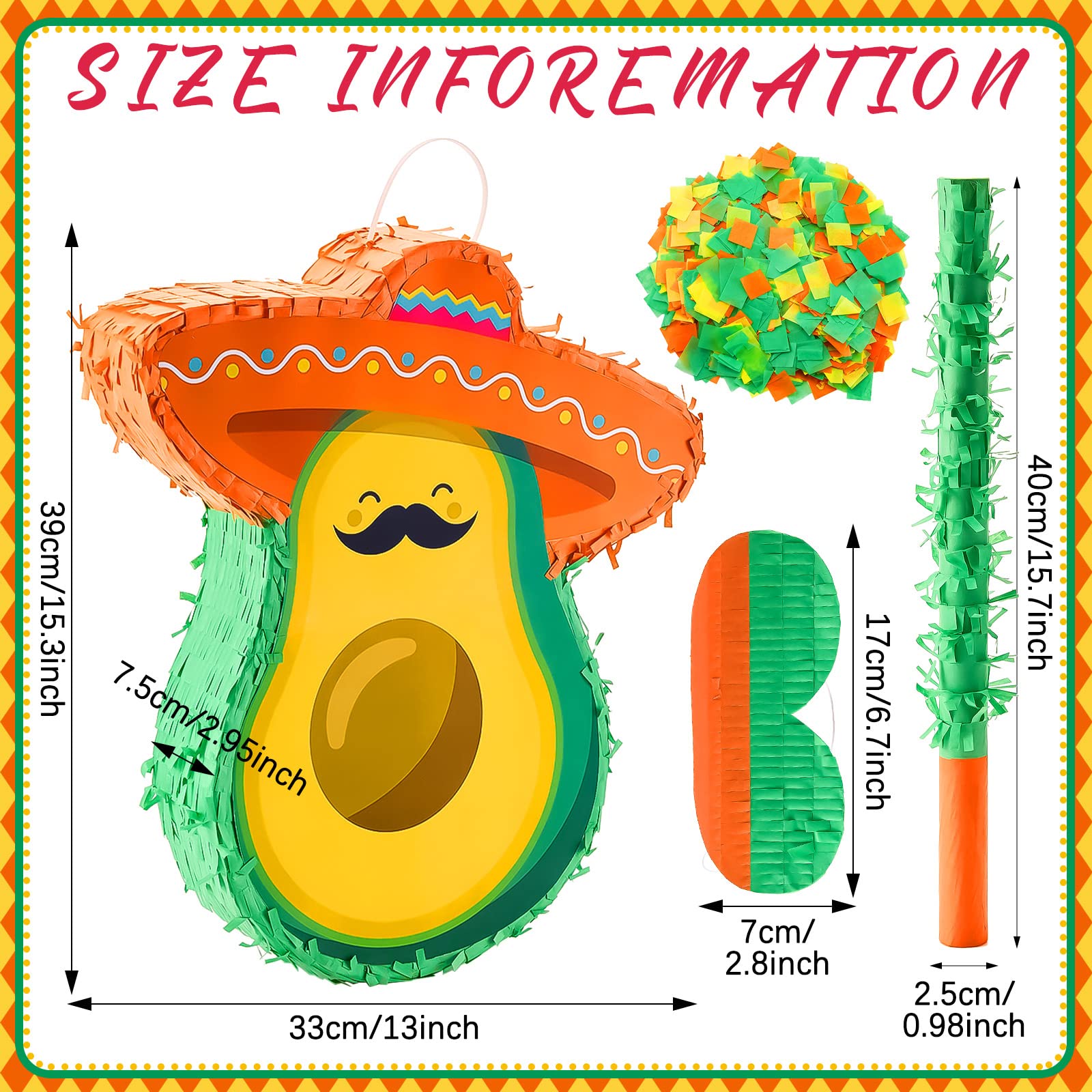 Avocado Piata Mini Sombrero Hats Mexican Fiesta Game Favors with Piata Stick Blindfold Confetti Set, 15.4 x 13 x 3 Inch