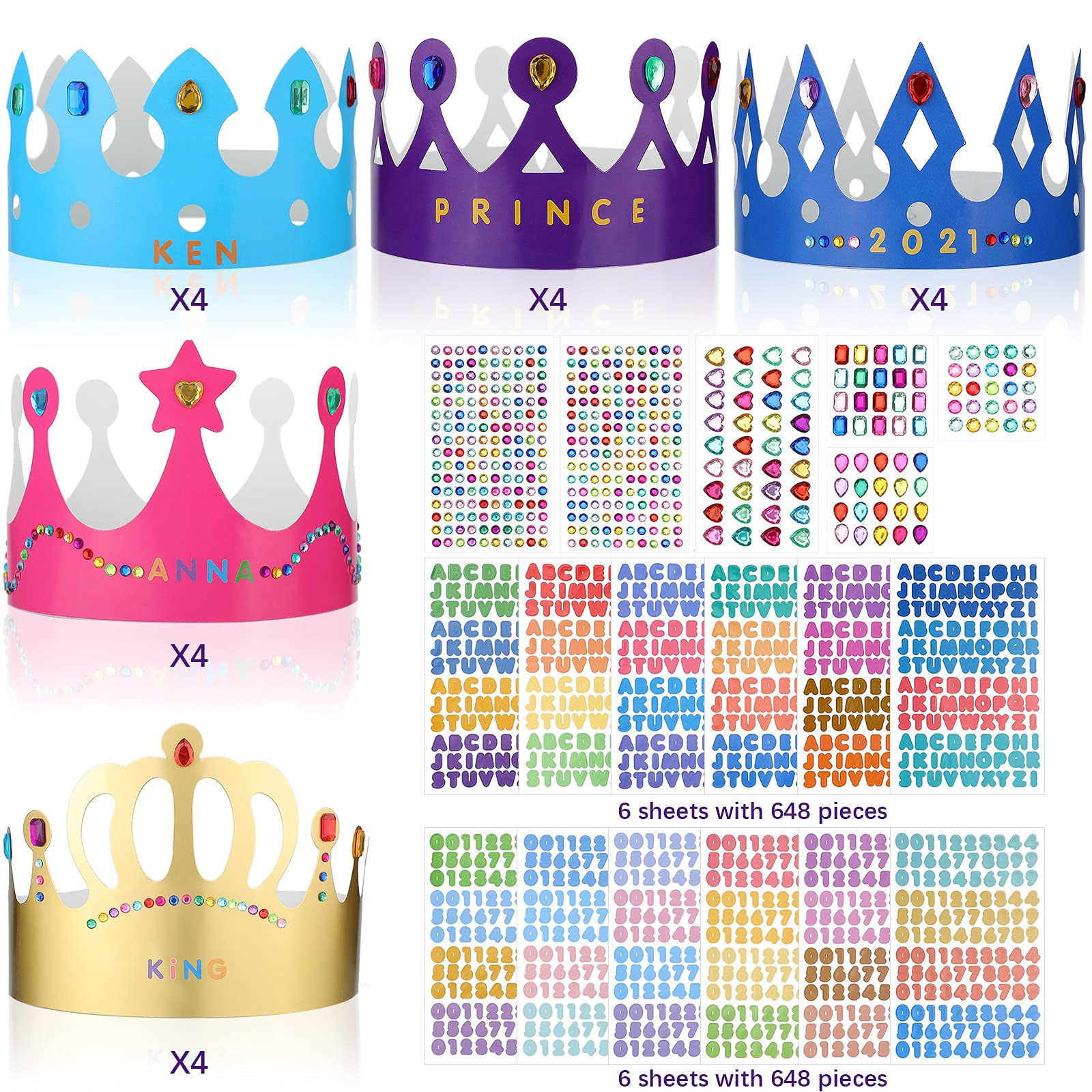 - Q: How can I personalize the crowns for my child's birthday party? A: You can easily personalize the crowns using the included 421 jewelry stickers and 1,368 letter and number stickers. Children can decorate their crowns in various colors and styles, making each crown unique and special.