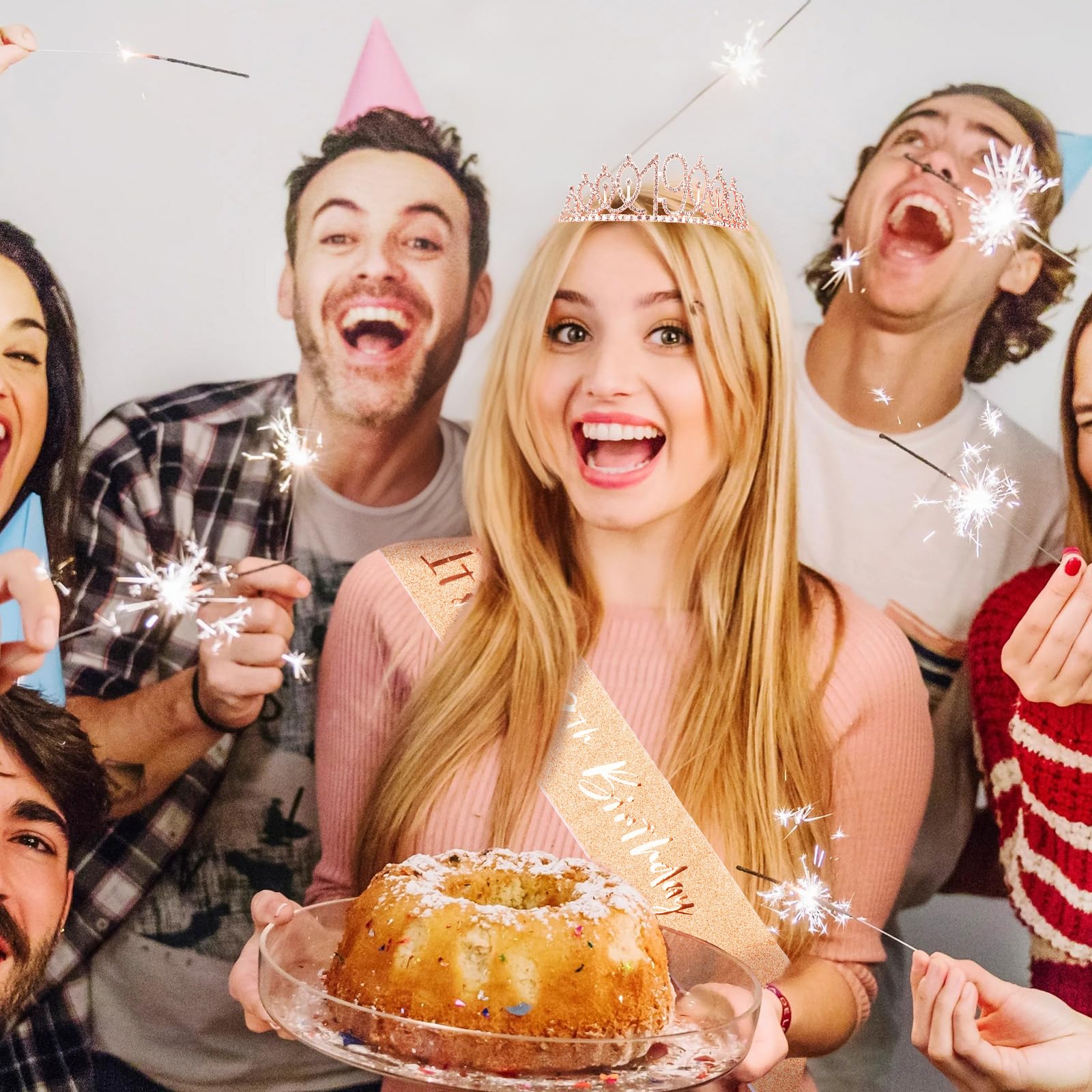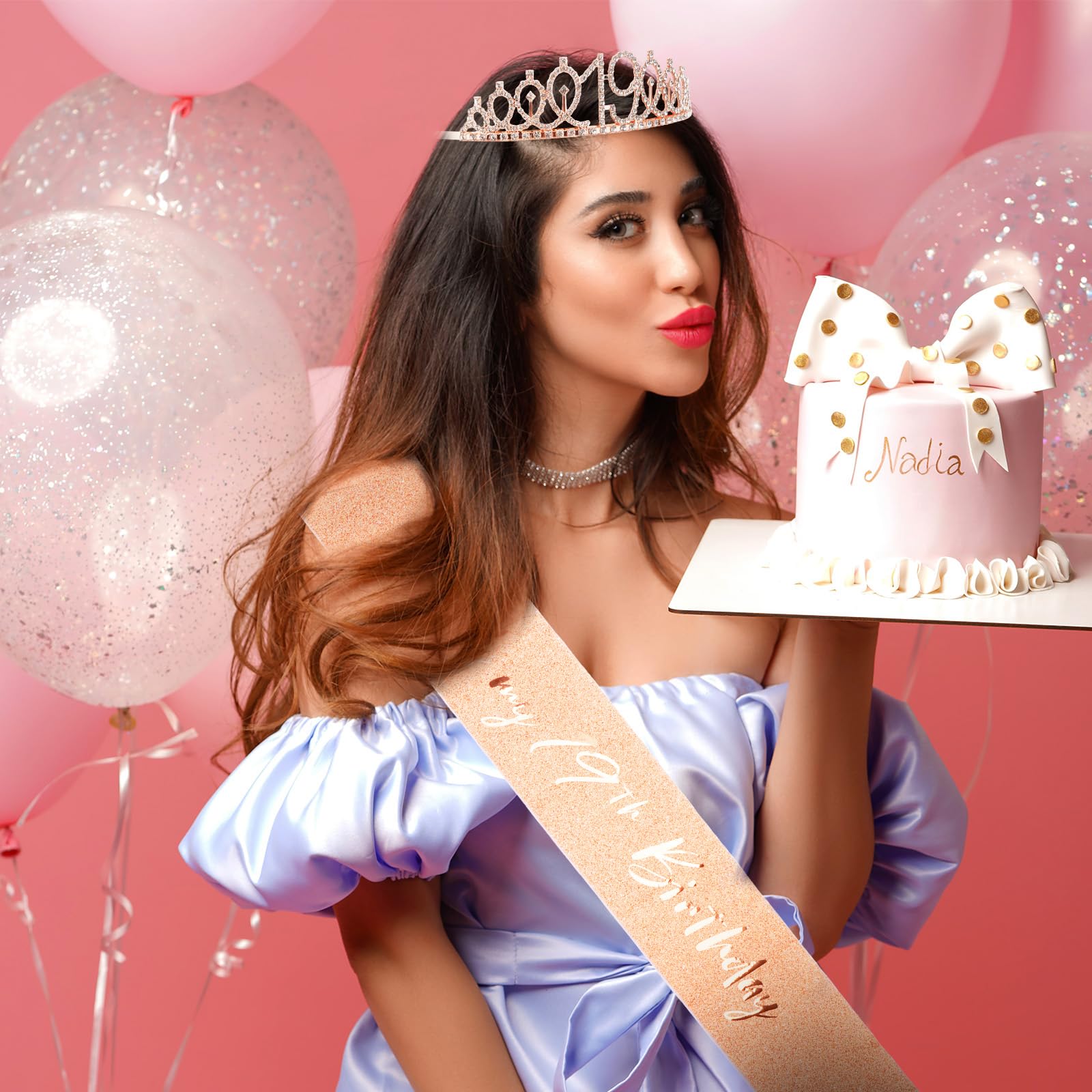 CIEHER 19th Birthday Crown and Sash for Girls, It s My 19 Bday Sash, 19th Birthday Decorations Rose Gold