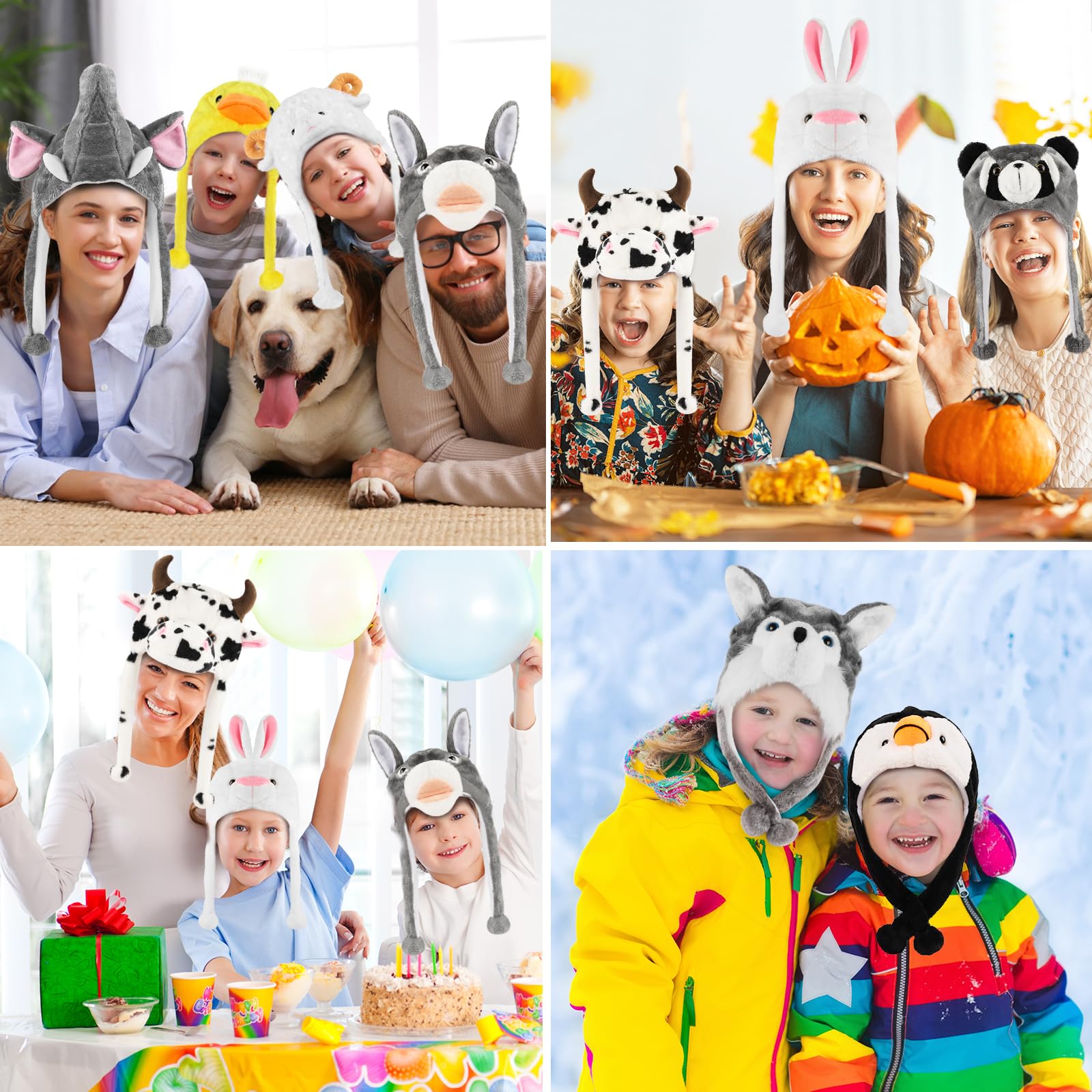 Funny Plush Animal Hat with Ear Flaps, Soft Fleece Hats Cute Bunny Cap for Kids Women Girls Cosplay Party Holiday Gifts