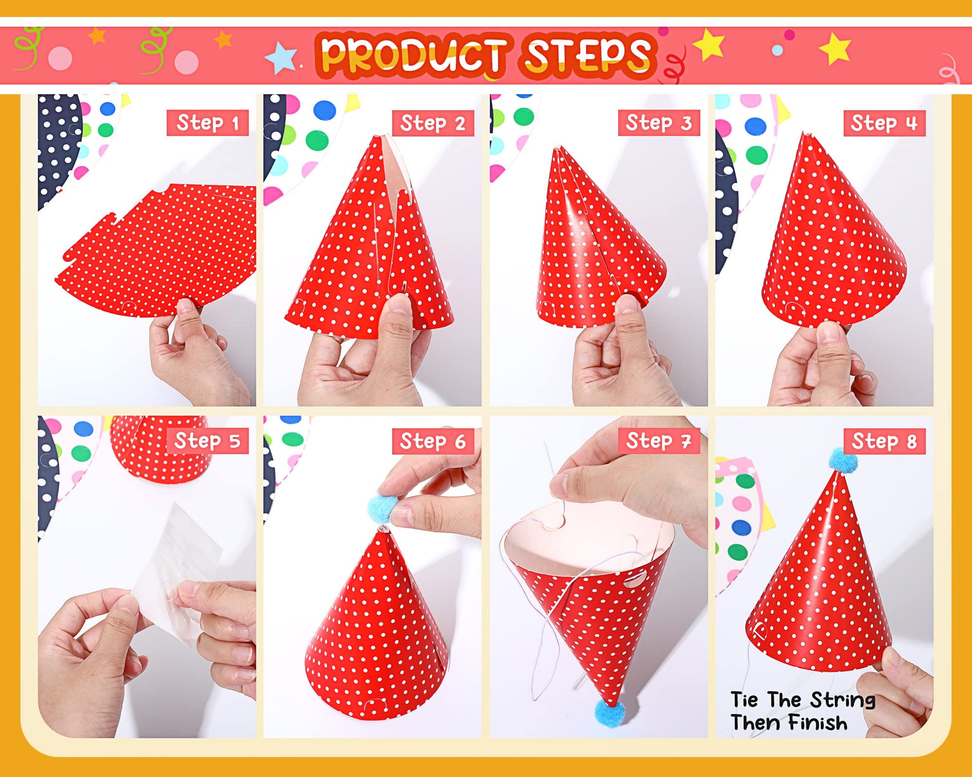 Features:These carnival hats for party are decorated with polka dots on the surface, looks elegant and energetic, easy to attract the attention of guests, suitable to cheer up the friends on their birthday party, create a lively party atmosphere, and leave unforgettable memories at the birthday party.The happy birthday party hats can create a warm atmosphere for children and adults, can be applied to birthday parties, newborn photo props, holiday celebrations and any other occasions, reusable and portable.Specifications:Material: paperColor: as shown in the picturesSize: as shown in the picturesPackage includes:10 x Birthday glasses11 x Mini party hatsNotes:Manual measurement, please allow slight errors on size.The color may exist a slight difference due to different screen displays.