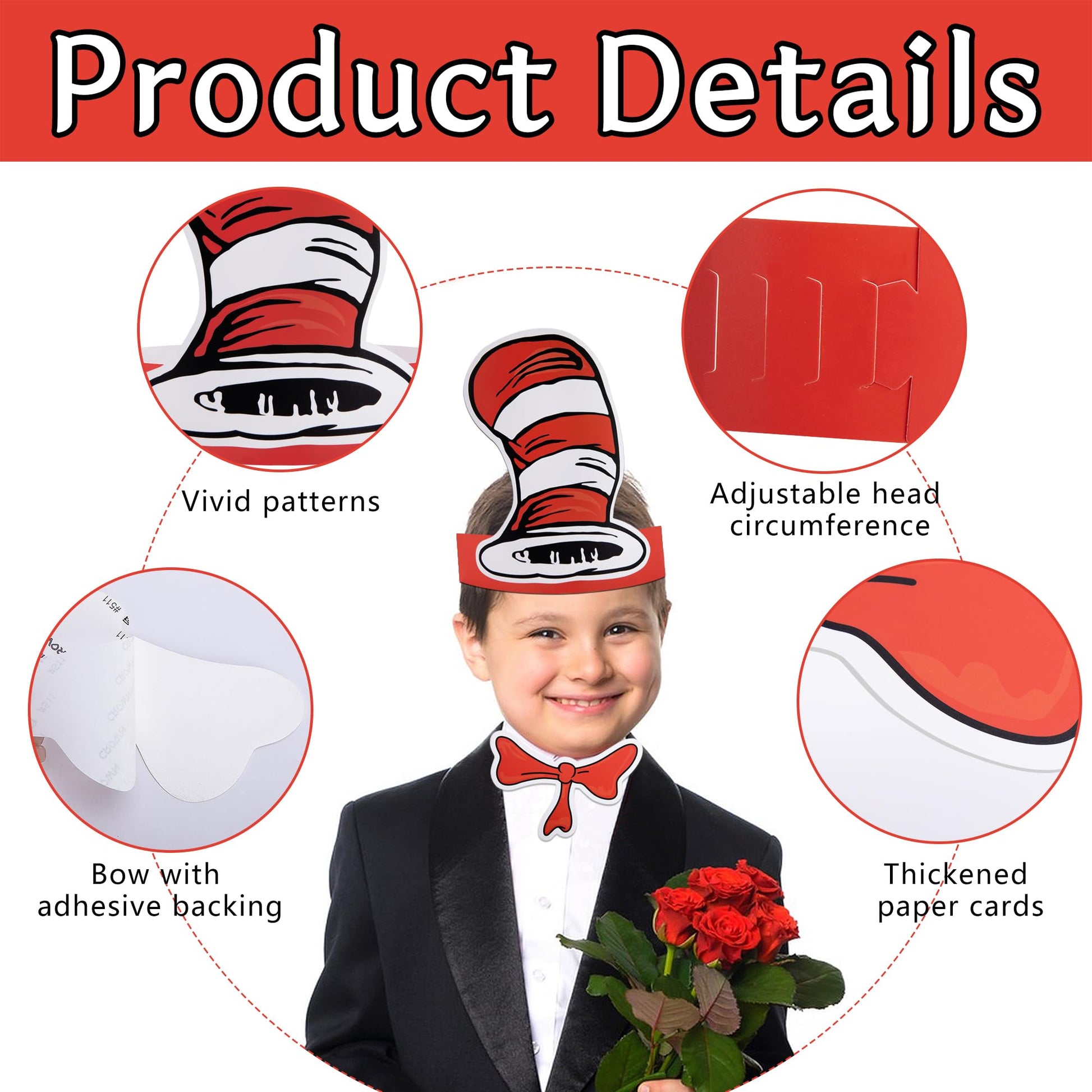 Why not choose our red and white striped paper hat to dress up as a picture book character in back-to-school parties The perfect choice for theme parties, role play, children's birthday parties, Made of high-quality 300g cardboard with bright printed Package include : 24 paper hat24 bow tie Specification: Color: red and white Size:reference picture Feature (1)It is perfect for carnival themed parties, and our red and white striped hats has bright colours and will catch everyone's eye at once (2)These hats are made of high quality cardboard, and can be reused for a long time. Adjustable design at the back is fitting most people's head girth Note: Pictures are for reference only, please refer to the real thing.