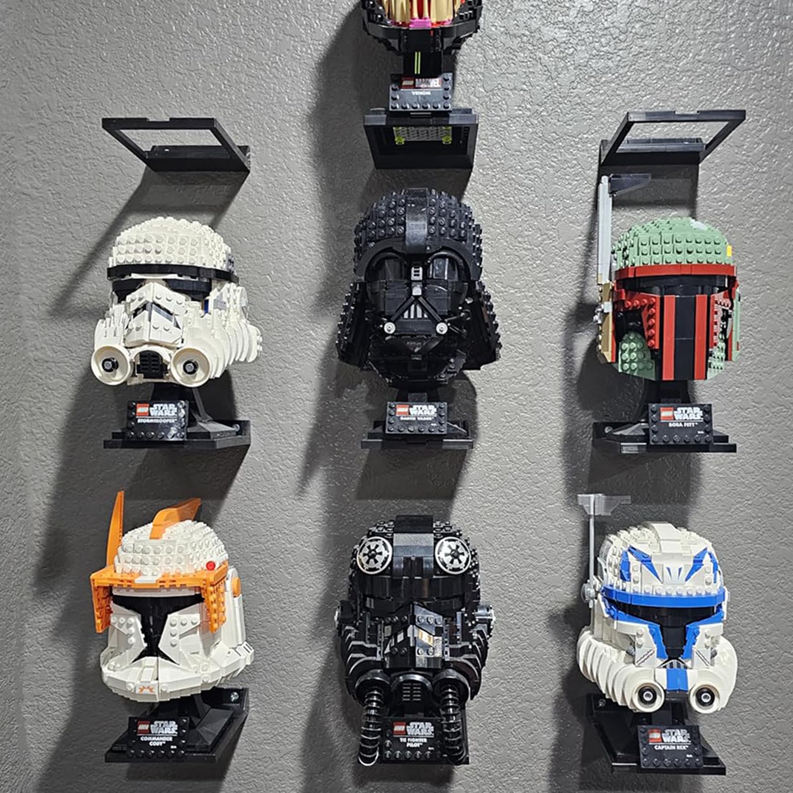 View compareTeyouyi 2Pcs Wall Mount For Lego Star Wars Helmet Display Shelf For Lego Star Wars Helmet Compatible With All Standard Lego Helmets Black