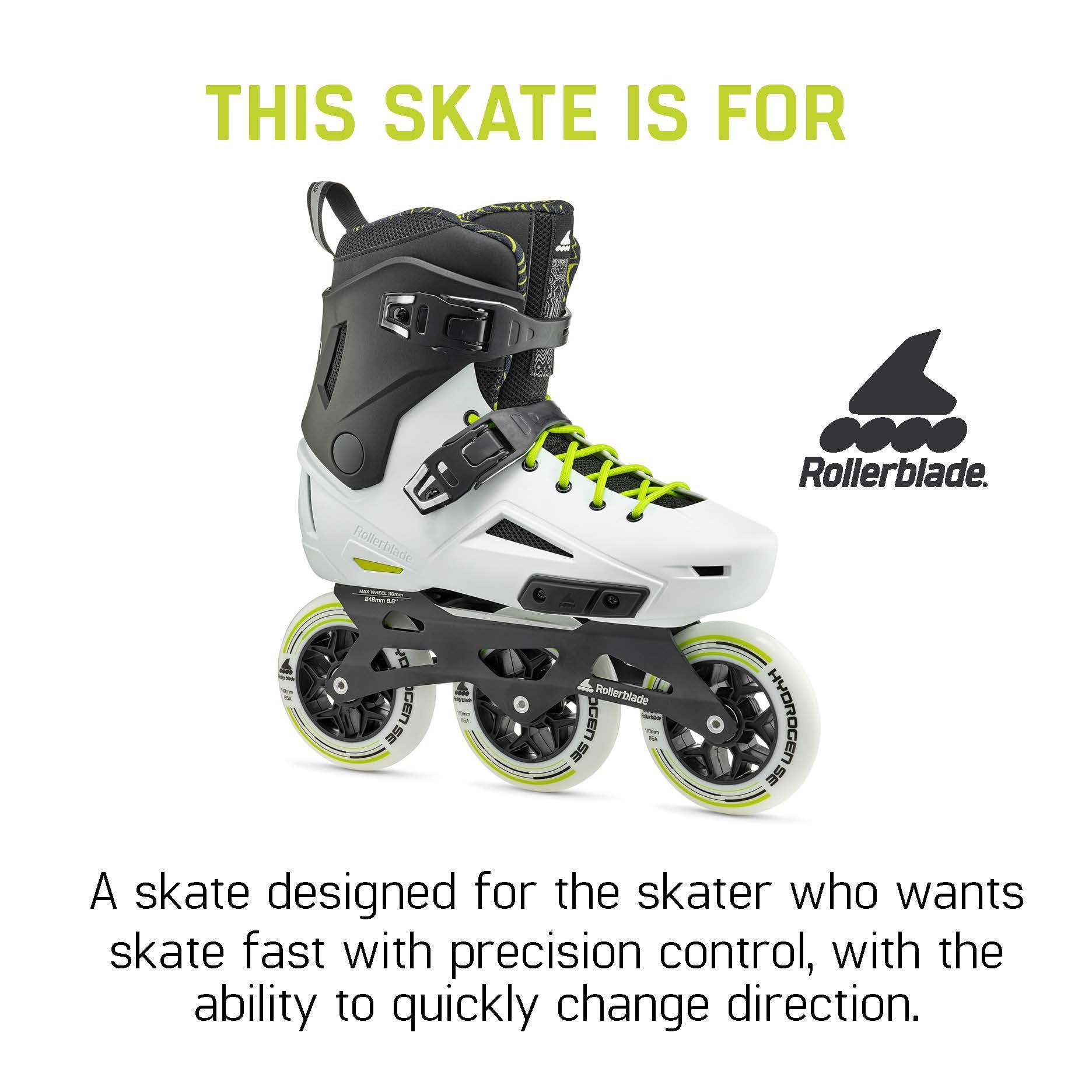 Looking for a versatile and fast urban skate? The Lightning 110 checks all the boxes. Built on the cornerstones of support comfort and versatility Lightning is your go to skate. Designed for all skating environments the Lightning 110 provides an anatomical and sublimated liner paired with top eyelets and a PSI footbed for ideal support. Molded-boot comfort and a durable shell provide performance and speed. This skate is an exceptional combination of enhanced fit optimal support and advanced maneuverability whether commuting or just cruising. Generous padding cushions the feet sublimated lining adds eye-catching details improved wrapping more breathability and shock-absorbing padding in the heel. This skate comes paired with the perfectly positioned 3x110 frame set up.