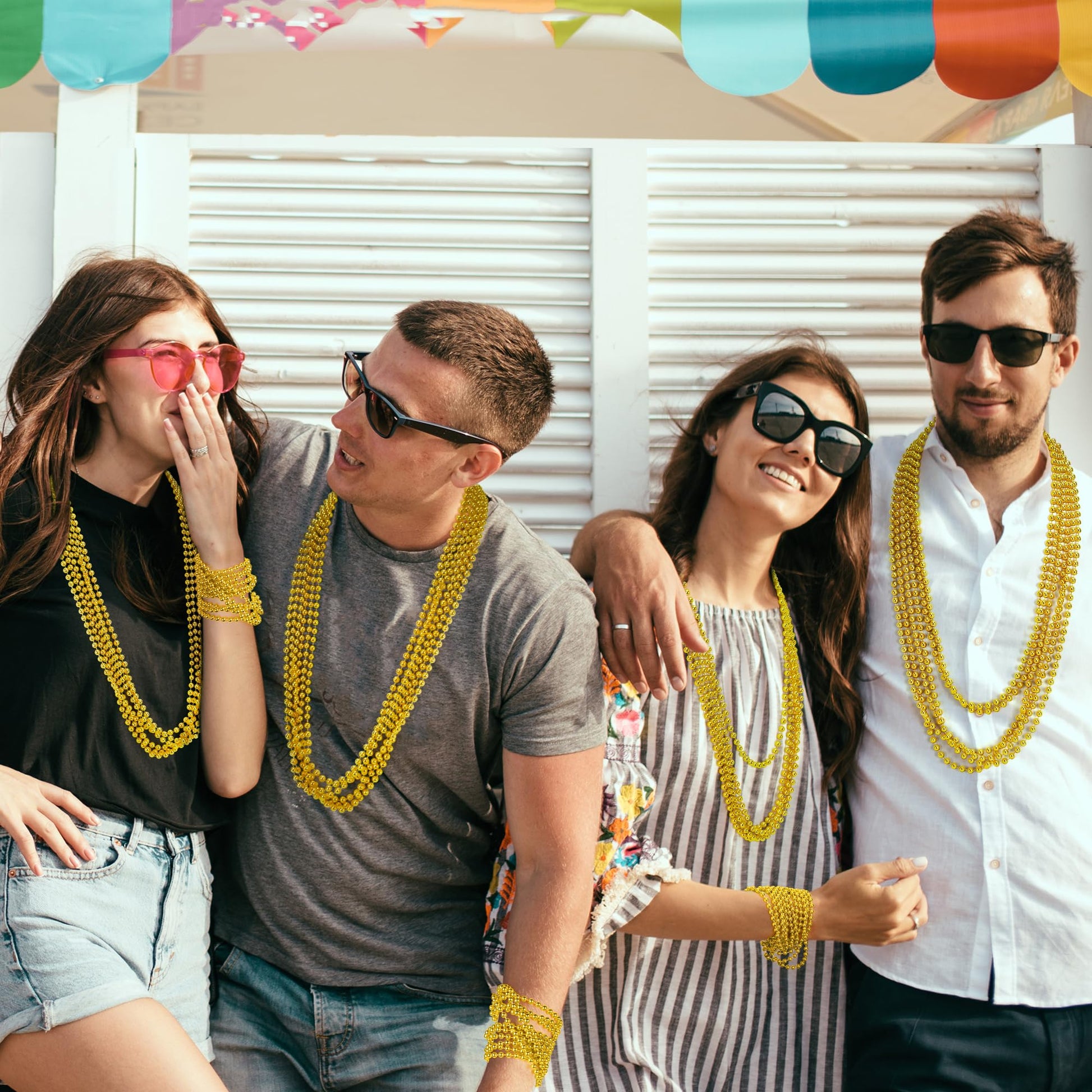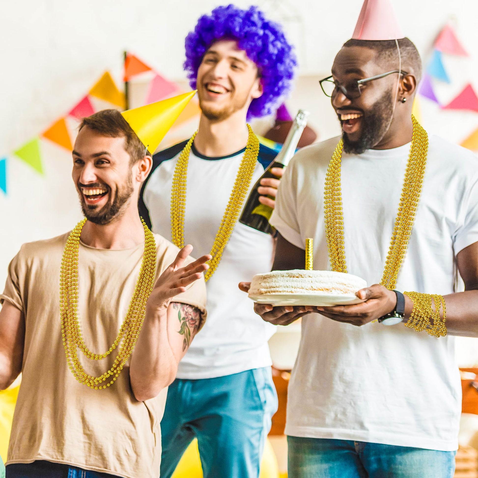 The bead necklace bulk is suitable for parades, parties, carnivals, and celebrationsPackage includes:15PCS gold beads necklaceSpecifications:Materials: PlasticSize: 33 inProduct Design:Bead accessories are suitable to parade carnival weddings and share with others.Bead necklaces are light in weight, exquisite in workmanship, and not easy to fade. They are suitable for matching with various holiday clothes.