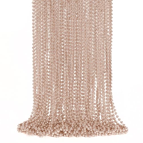 24PCS Mardi Gras Beads, Metallic Rose Gold Christmas Bead Necklace Party Favors, 33 Mardi Gras Necklace Women Men Stuff, Festiva
