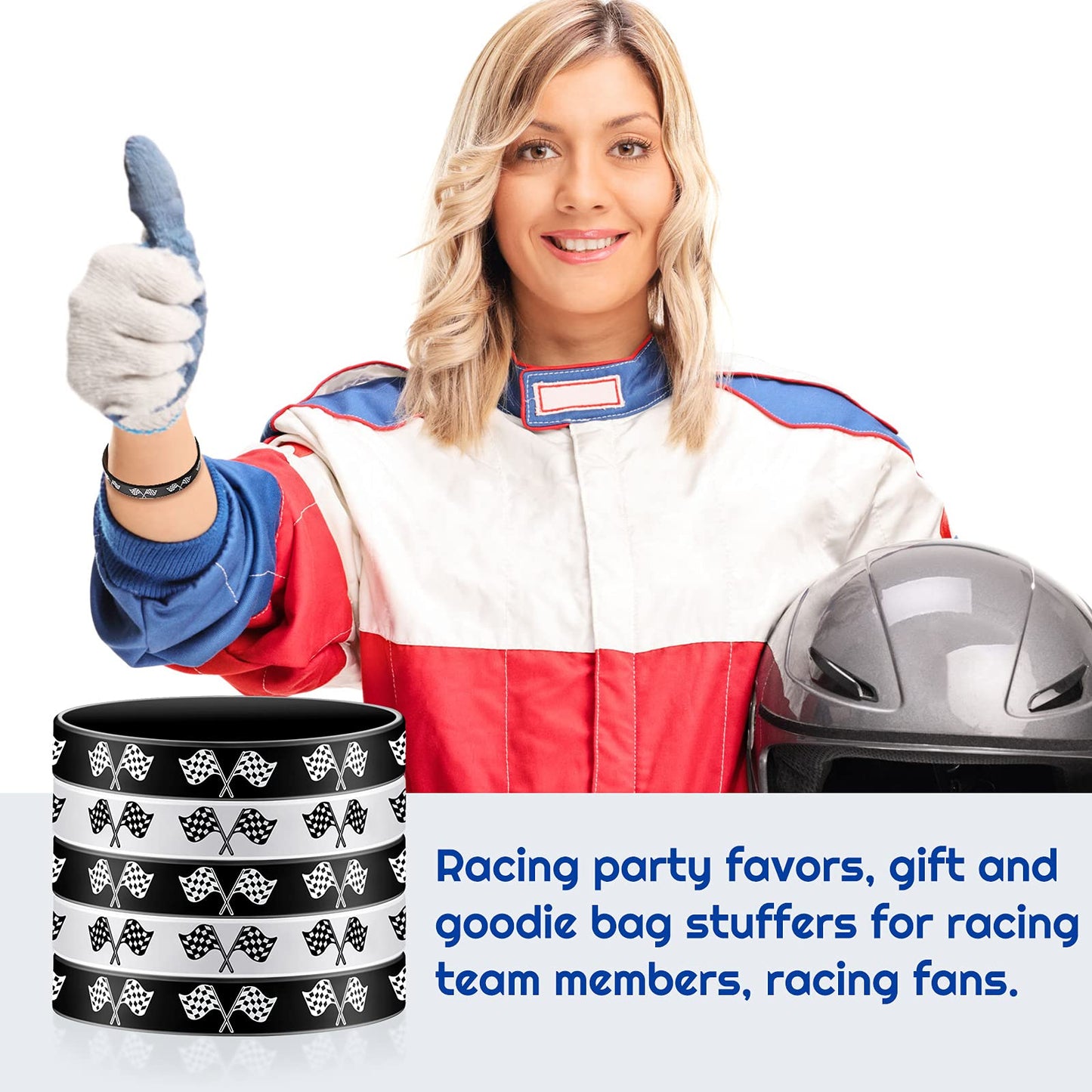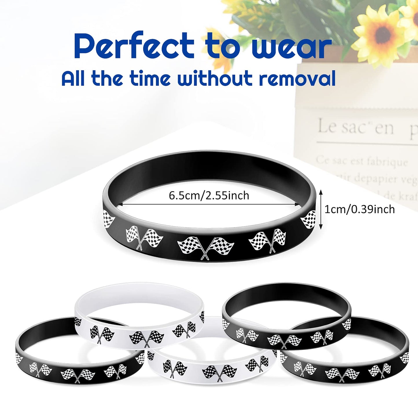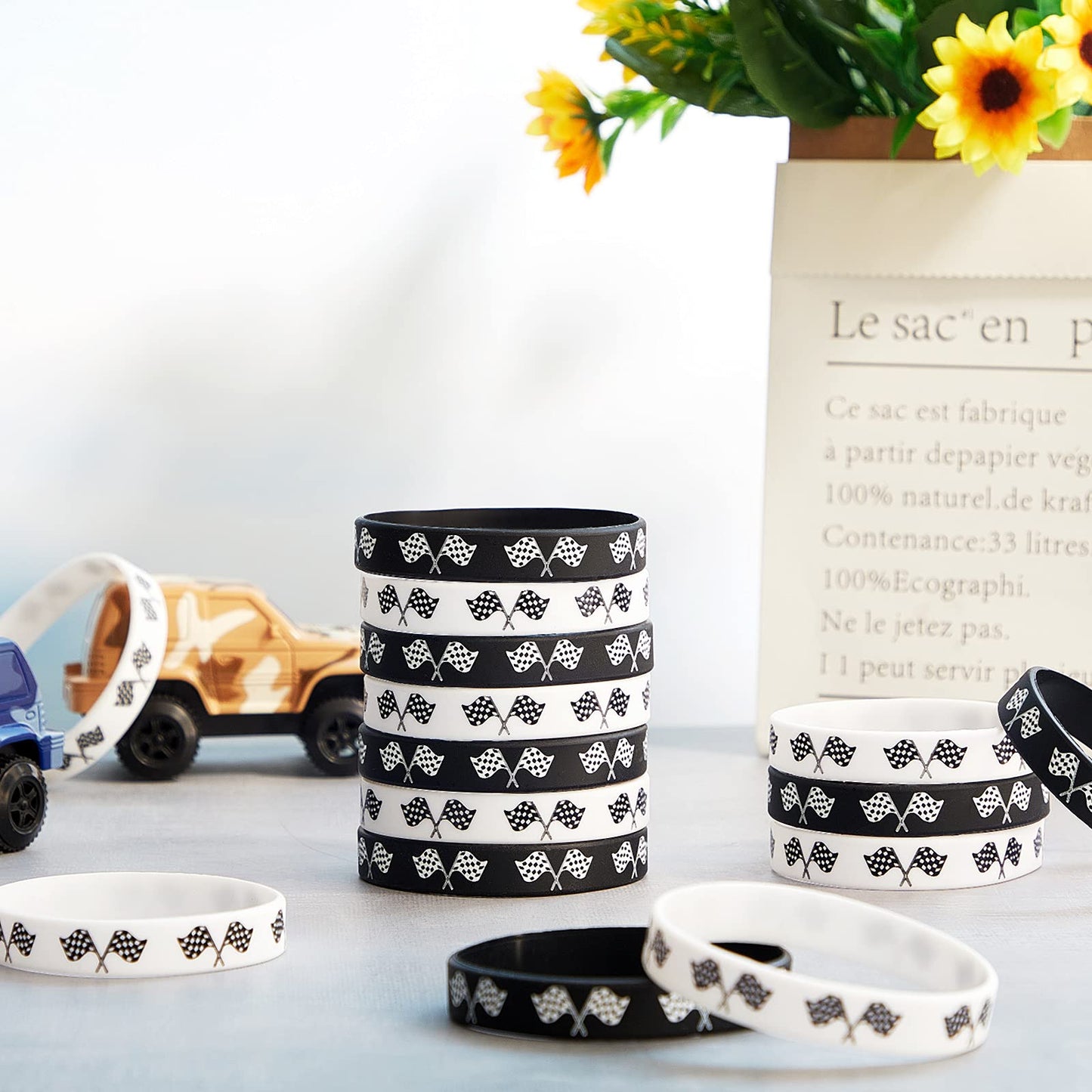 48 Pieces Racing Flag Rubber Bracelets 2.56 Inch Silicone Race Car Silicone Wristbands for Fitness, Racing, Dirt Bike, Basketbal