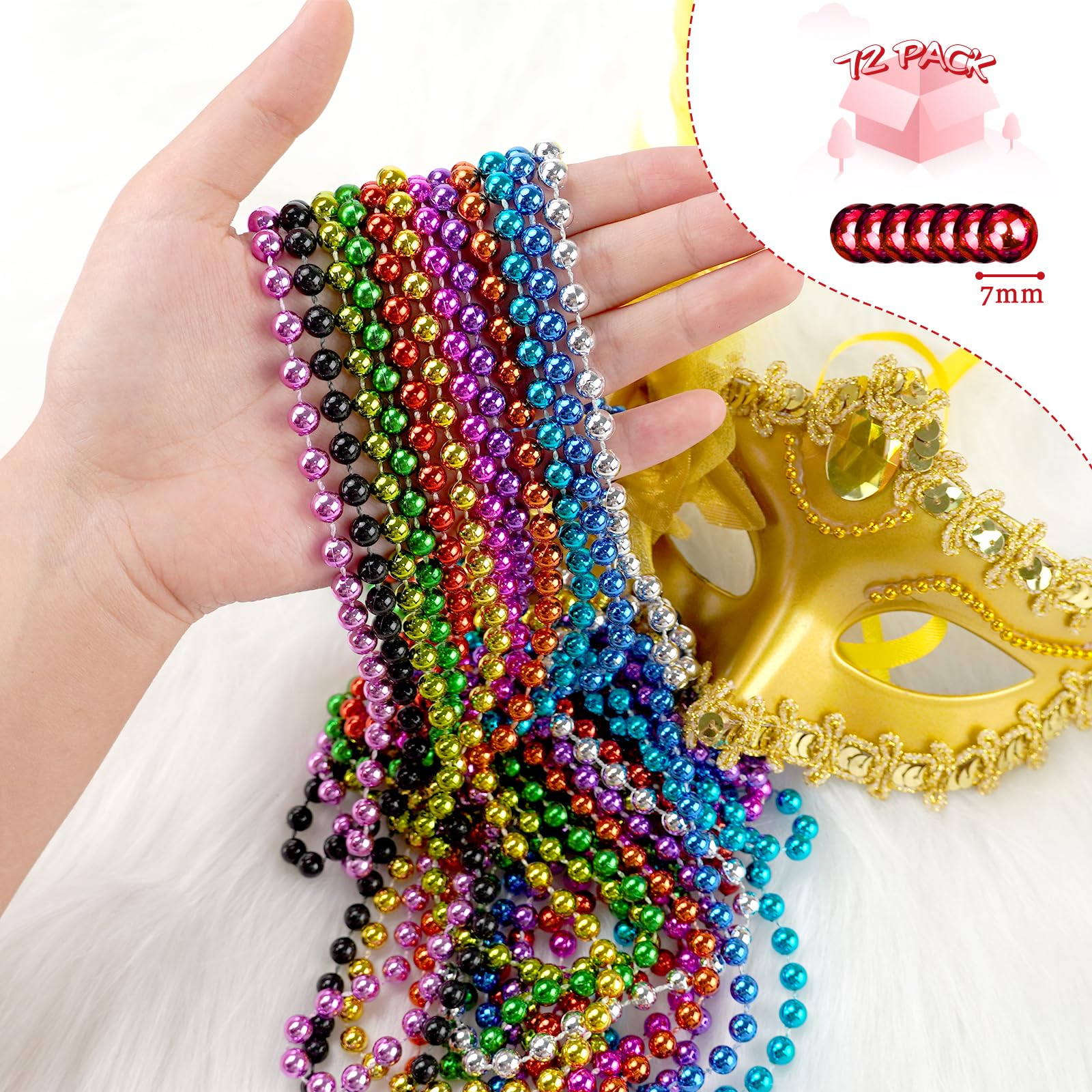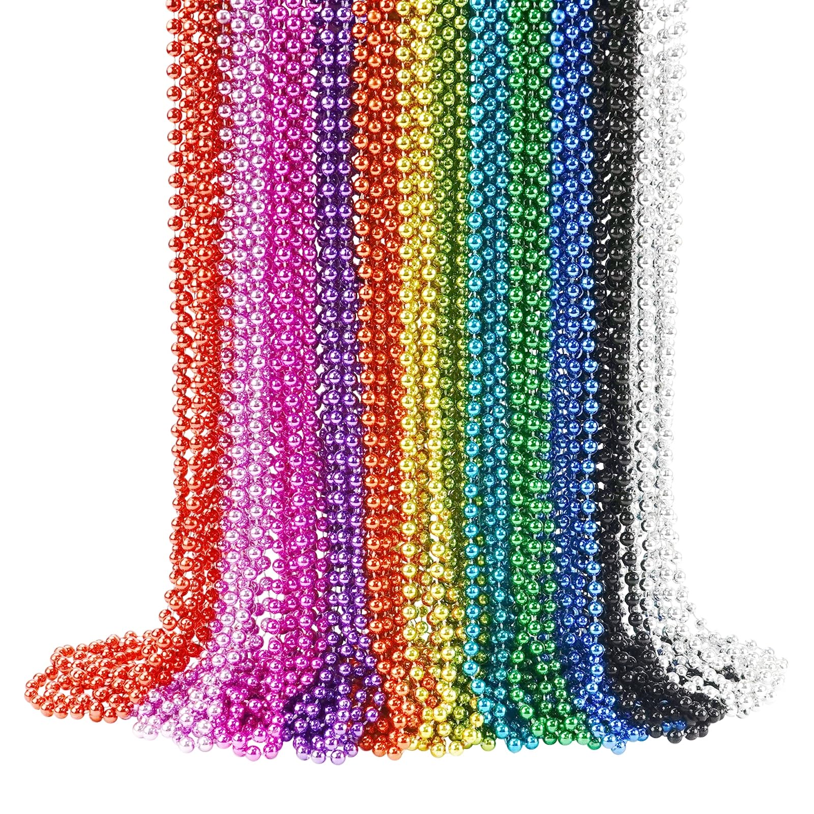 YAXINRUI 72pcs Metallic Silver Bead Necklaces, 33 Inch 7 mm Mardi Gras Beads Bulk Round Beaded Necklaces Costume Necklace for Mardi Gras Party Christmas Festive Events, Party Favors